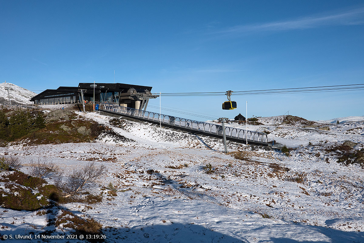 Hangurstoppen mot Voss Gondol og Hangurstoppen Restaurant, 14. november 2021, 13:19 (Hanguren, Voss)