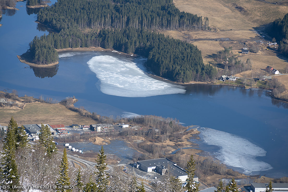 Tråstølen mot Borstrondi, Lønavatnet og Melsvatnet sett frå Tråstølsvegen, 15. mars 2021, 11:25 (Skulestadmo)Skulestadmo frå Hangurstoppen, 15. mars 2021, 12:42 (Borstrondi, Kvitheim, Hanguren)Melsvatnet frå Hangurstoppen, 15. mars 2021, (Skulestadmo Lambatangen Hanguren Tide Bussar Elkjøp Rema 1000)