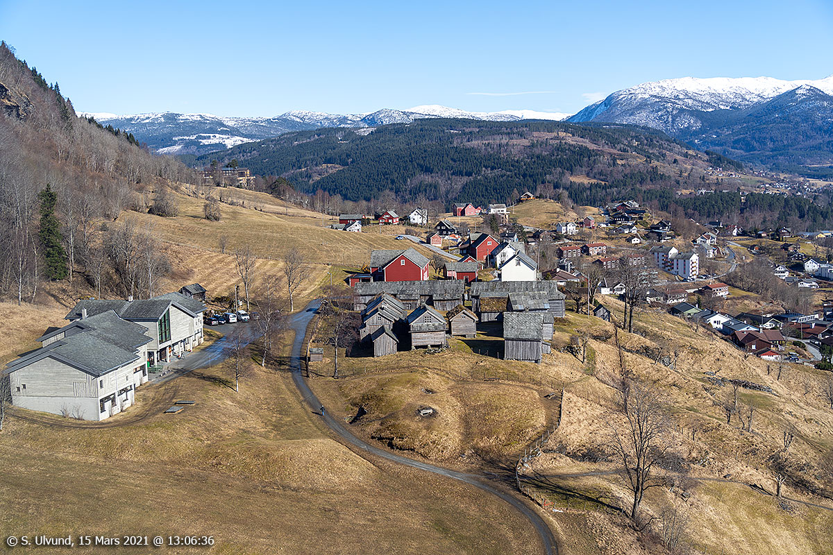 Mølstertunet (Voss Folkemuseum) sett frå Voss Gondol, 15. mars 2021, 13:06, +3C (Voss)