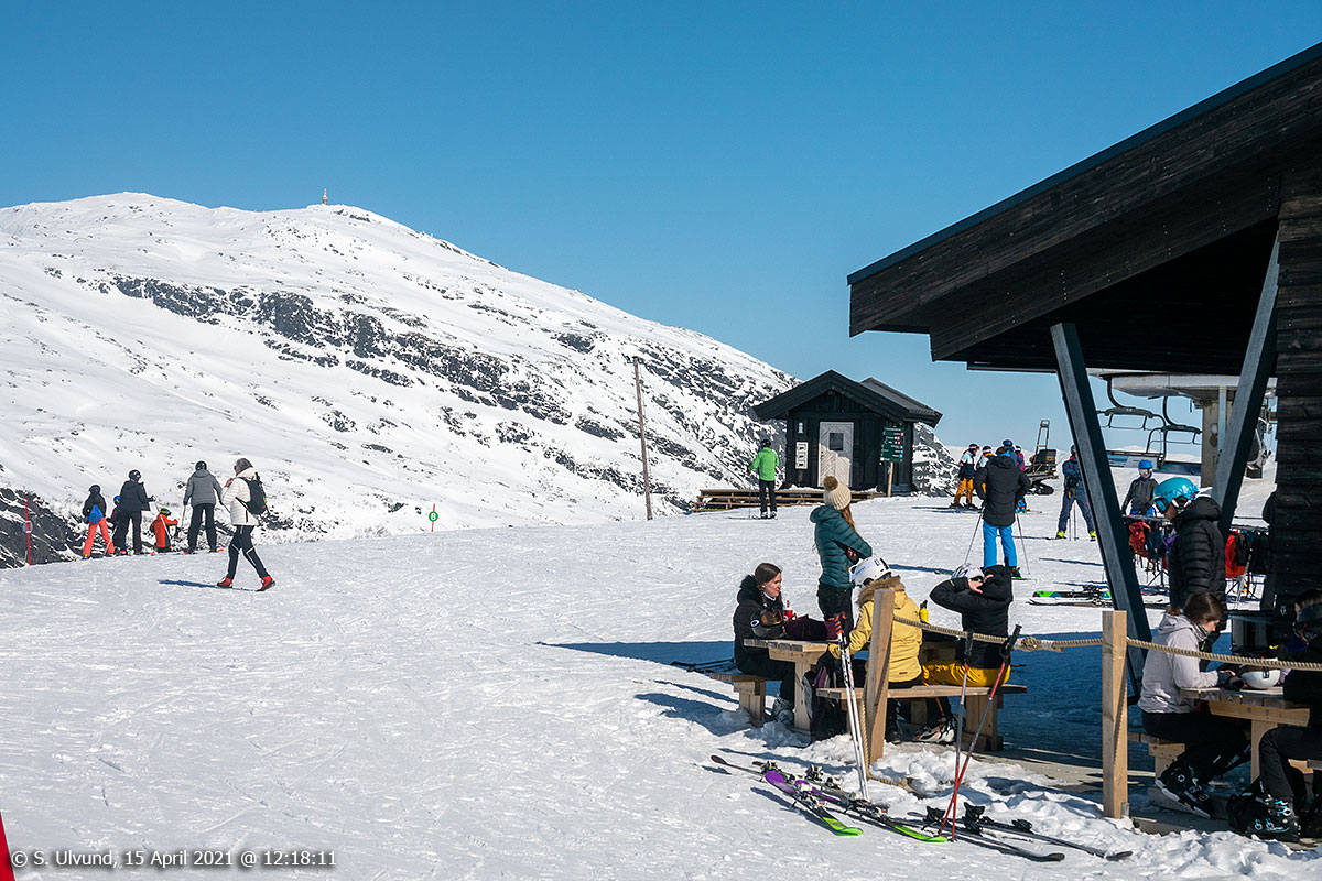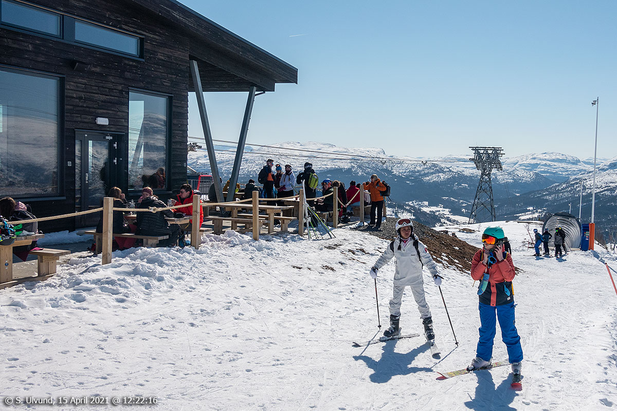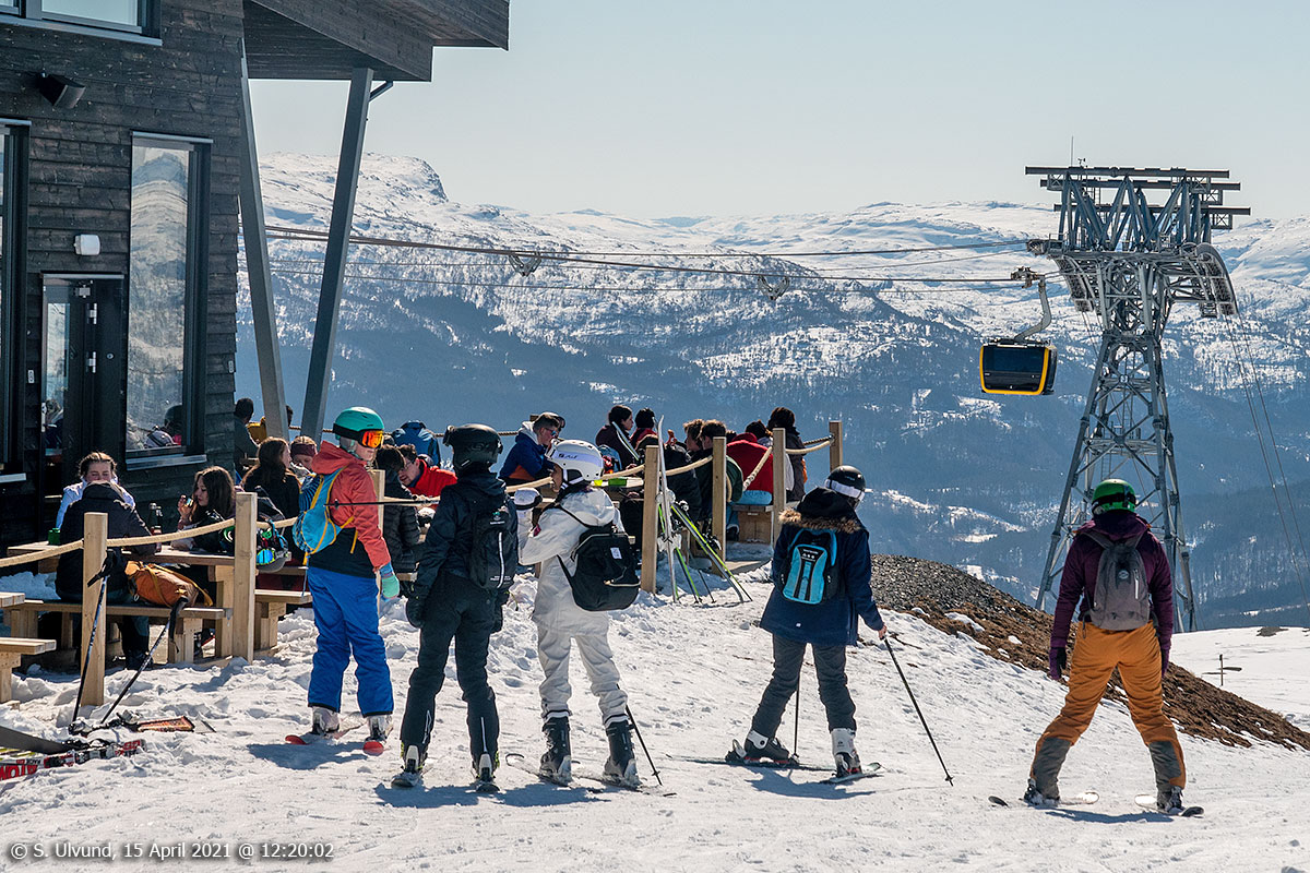 På Hangurstoppen utanfor Voss Gondol og Hangurstoppen Restaurant, 15. april 2021, 12:22, 0C (Hanguren, Voss)