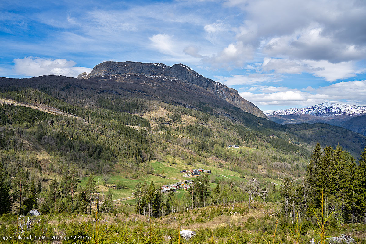 Utsyn mot Kjerland sett frå parti på Neståsåsen, 15. mai 2021, 12:35 (Granvin)