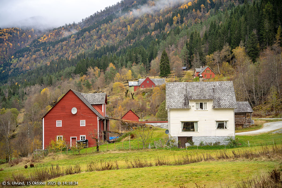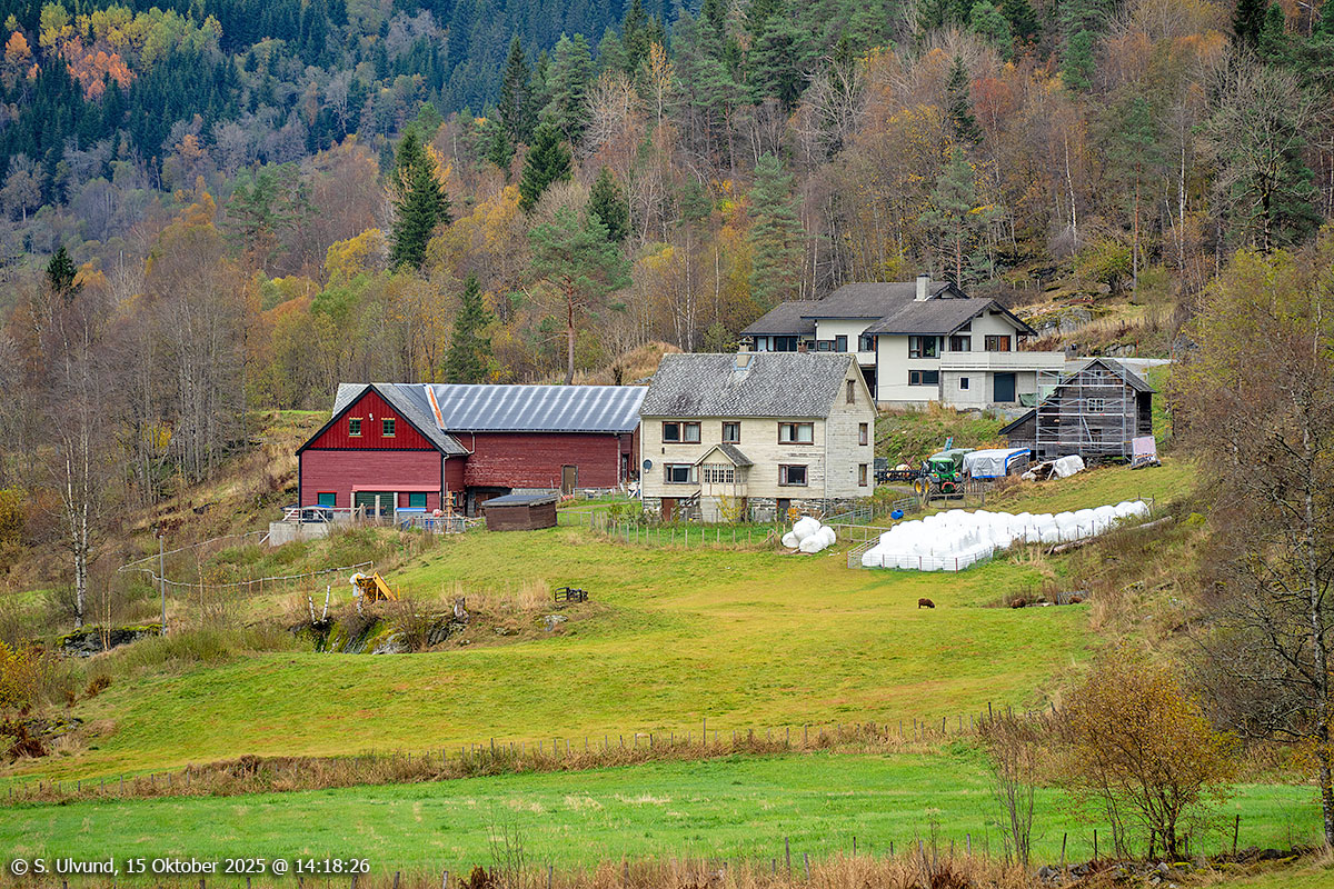 Herheim, Sausjord og Gavle sett frå Haga, 15. oktober 2025, 13:40 (Vossestrand)