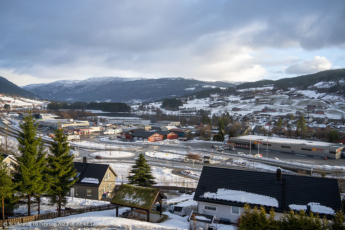 Voss sentrum frå Raugstadvegen, 16. februar 2023, 10:40, +3C