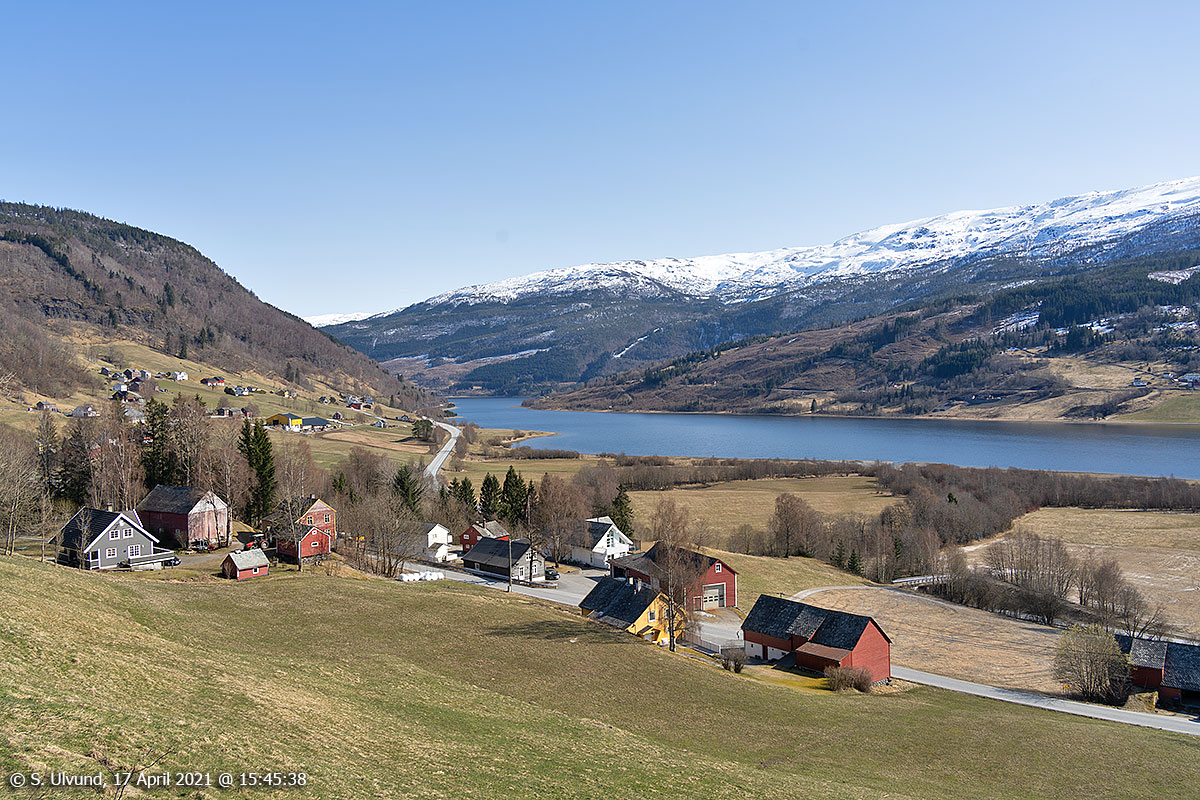 Lilandsosen mot Bulken Stasjon sett frå Lilandsbrua, 17. april 2021, 15:52, +14C (Voss-Bulken)