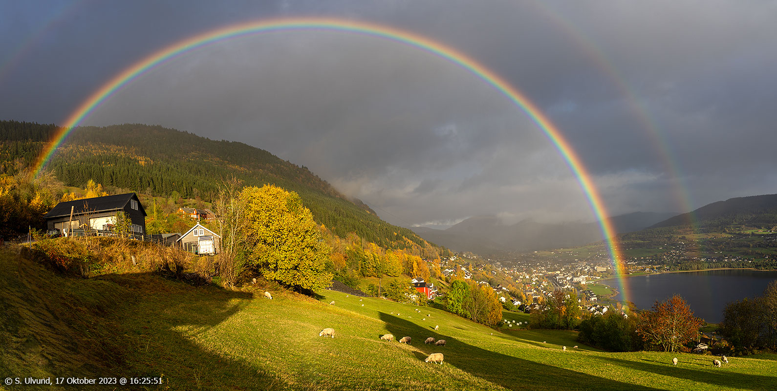 Flott regnboge sett frå Bauthusvegen med Voss i bakgrunnen, 17. oktober 2023, 16:25, +9CFlott regnboge sett frå Bauthusvegen med Voss i bakgrunnen, 17. oktober 2023, 16:25, +9CFlott regnboge sett frå Bauthusvegen med Voss i bakgrunnen, 17. oktober 2023, 16:24, +9CFlott regnboge sett frå Bauthusvegen med Voss i bakgrunnen, 17. oktober 2023, 16:27, +9CSauer på beite med Seimsbrua og Vangsvatnet bak sett frå Bauthusvegen, 17. oktober 2023, 16:23, +9C (Voss)Voss sentrum sett frå Raugstadvegen, 17. oktober 2023, 16:19, +9C
