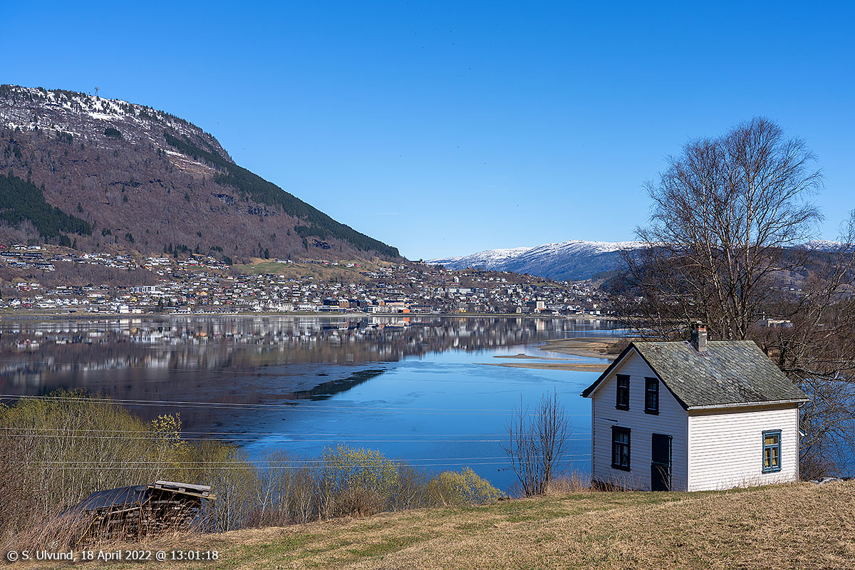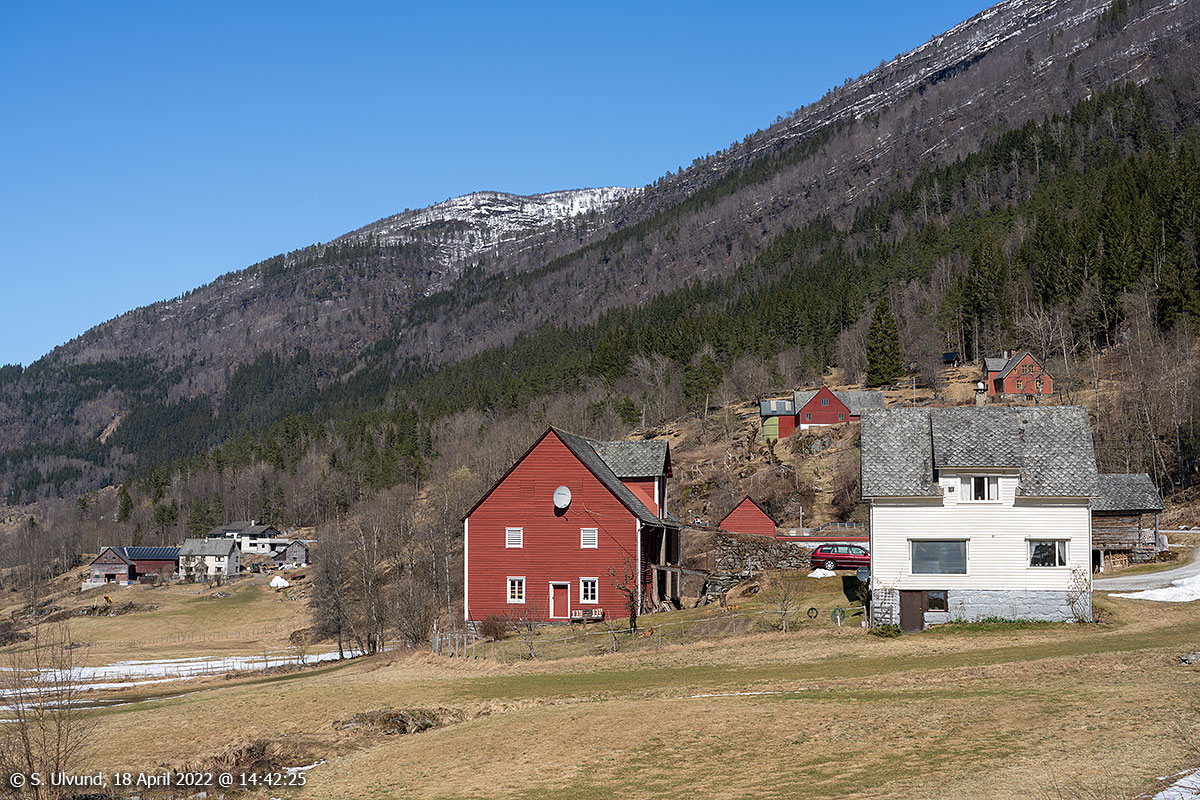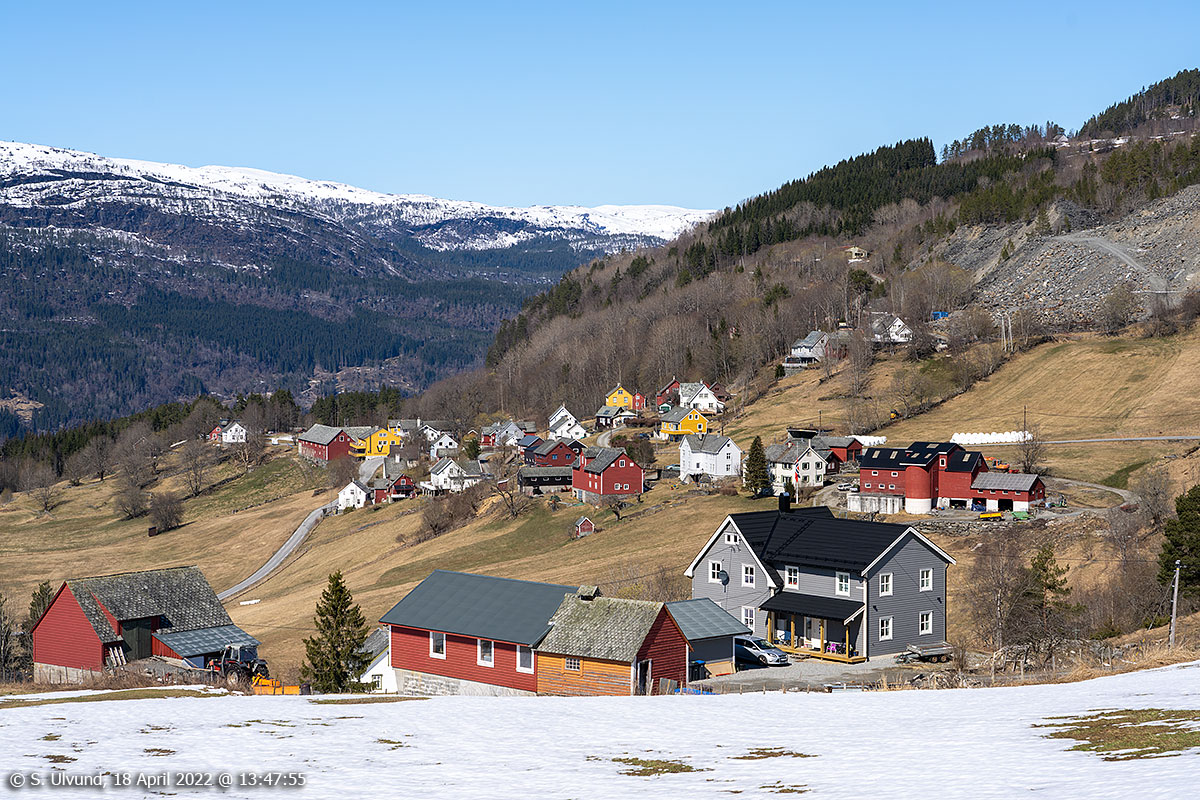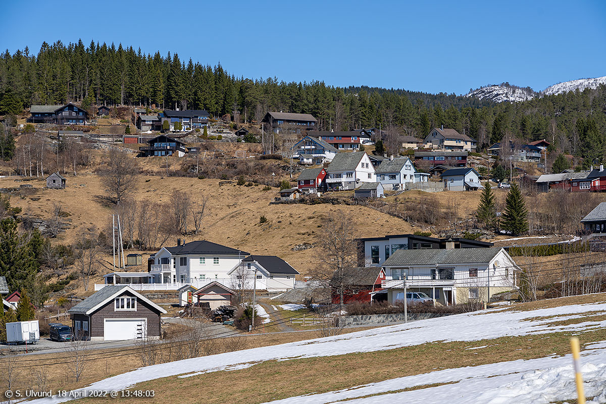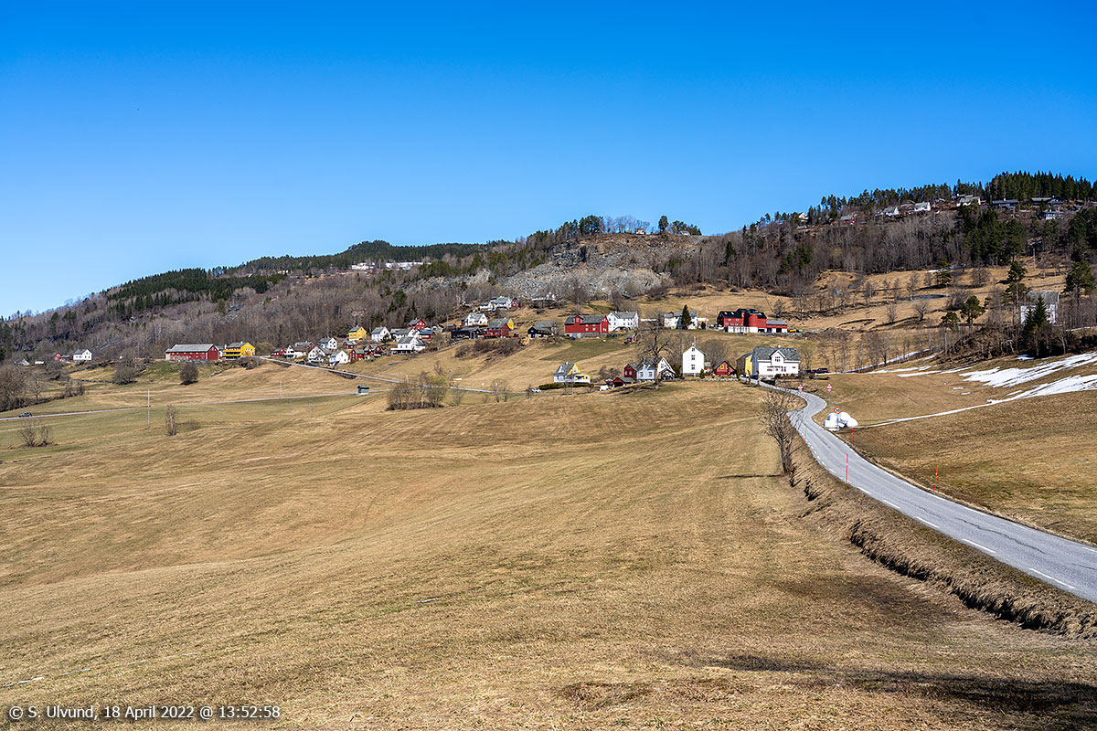 Nedre og Øvre Kyte med Norheim bak sett frå Kytesvegen, 18. april 2022, 13:52, +16C