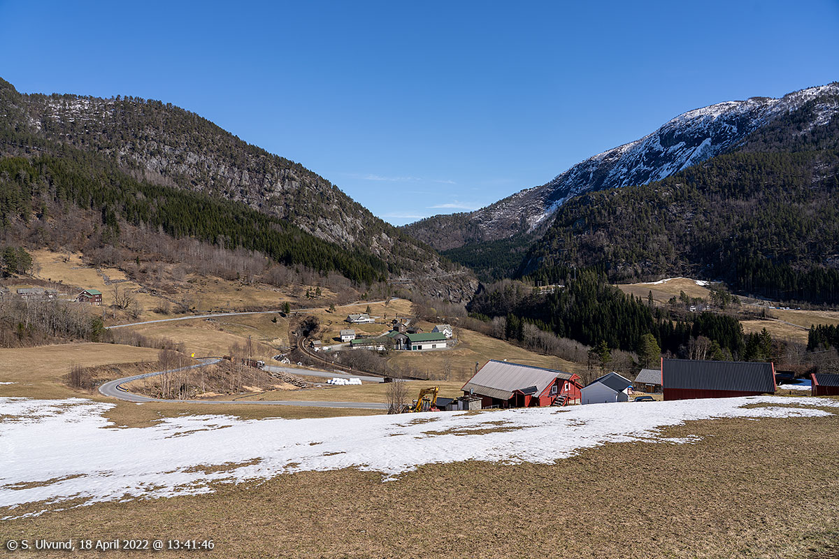 Dyrvedalen sett frå Dagestad, 18. april 2022, 14:42, +16C (Bulken-Voss)