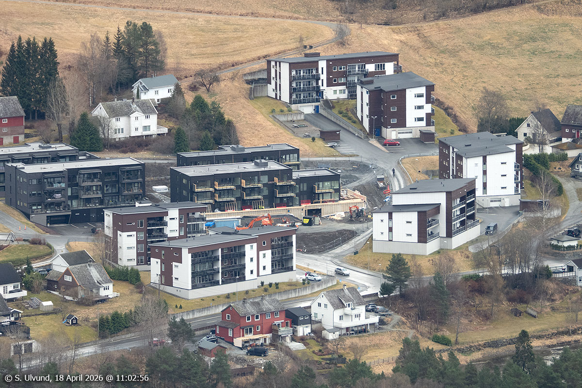 Nyre (Boligfelt) sett frå Mølsterberget, 18. april 2026, 11:02, +9C (Voss)