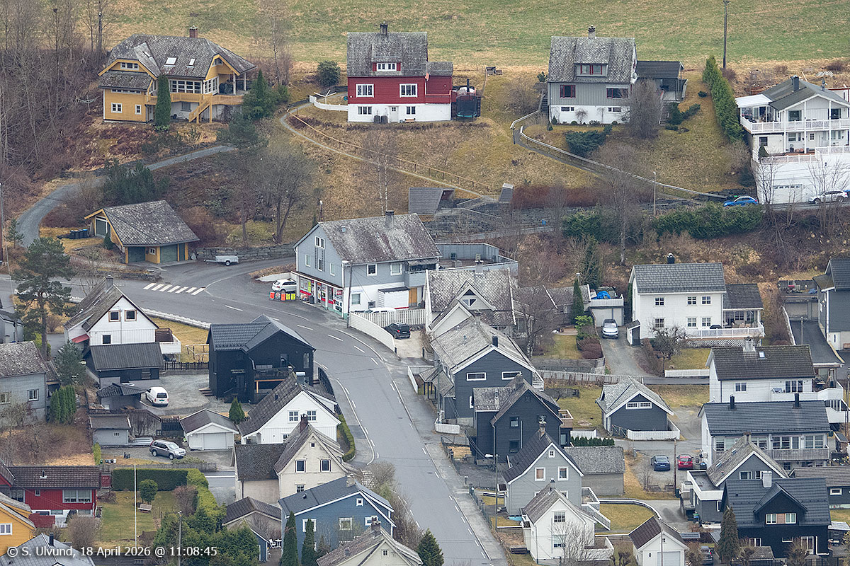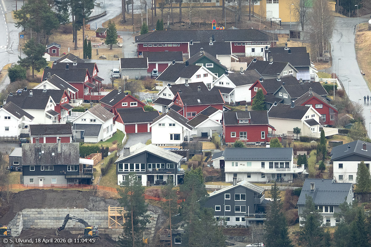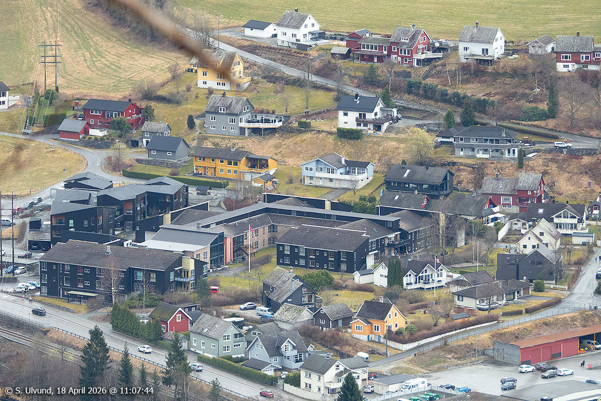 Gjernes (Boligfelt) sett frå Mølsterberget, 18. april 2026, 11:04 (Gjernes, Voss)