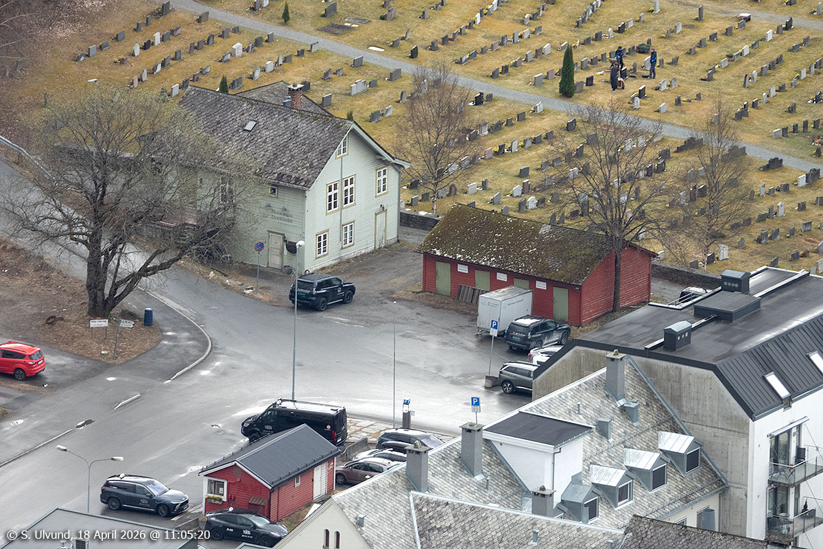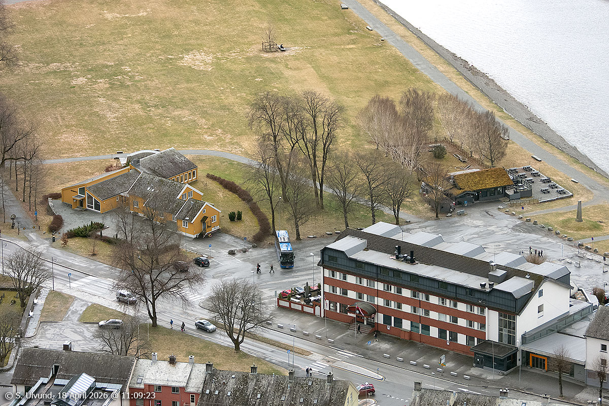 Prestegarden og Minigolfen sett frå Mølsterberget, 18. april 2026, 11:09, +9C (Voss)