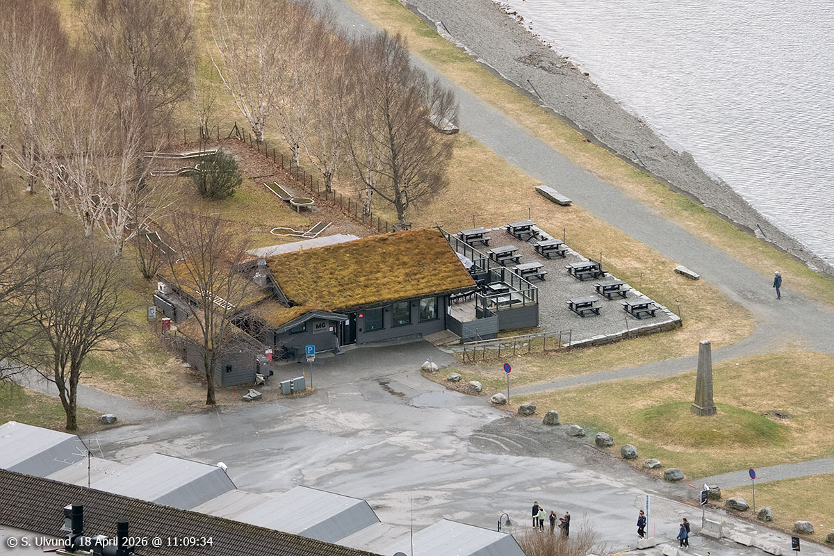 Minigolfen (Bergsliplass) sett frå Mølsterberget, 18. april 2026, 11:09, +9C (Voss)
