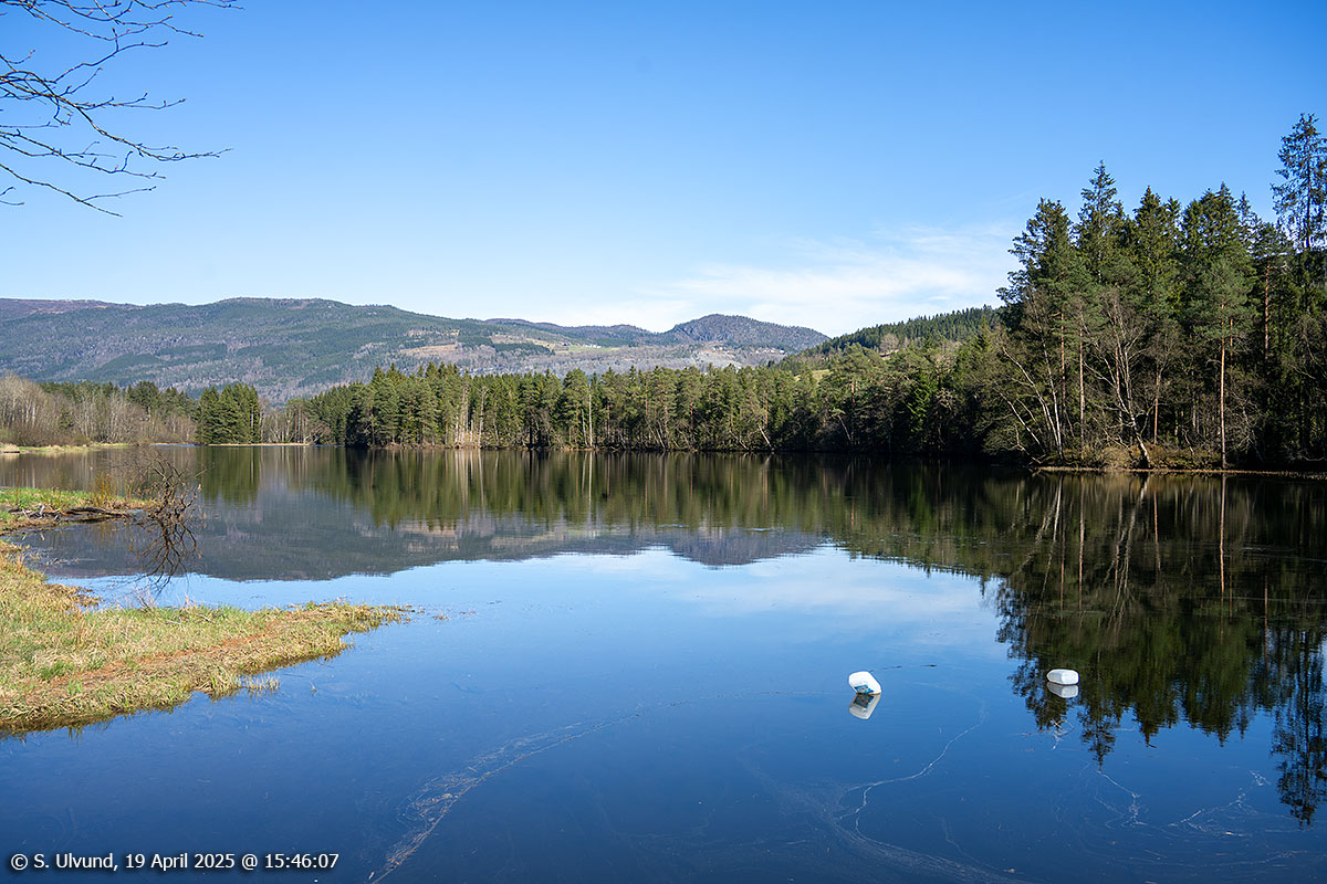 Melsvatnet, 19. april 2025, 15:46, +17C (Skulestadmo)Melsvatnet mot Gråsida og Hangurstoppen, 19. april 2025, 15:45, +17C (Skulestadmo)