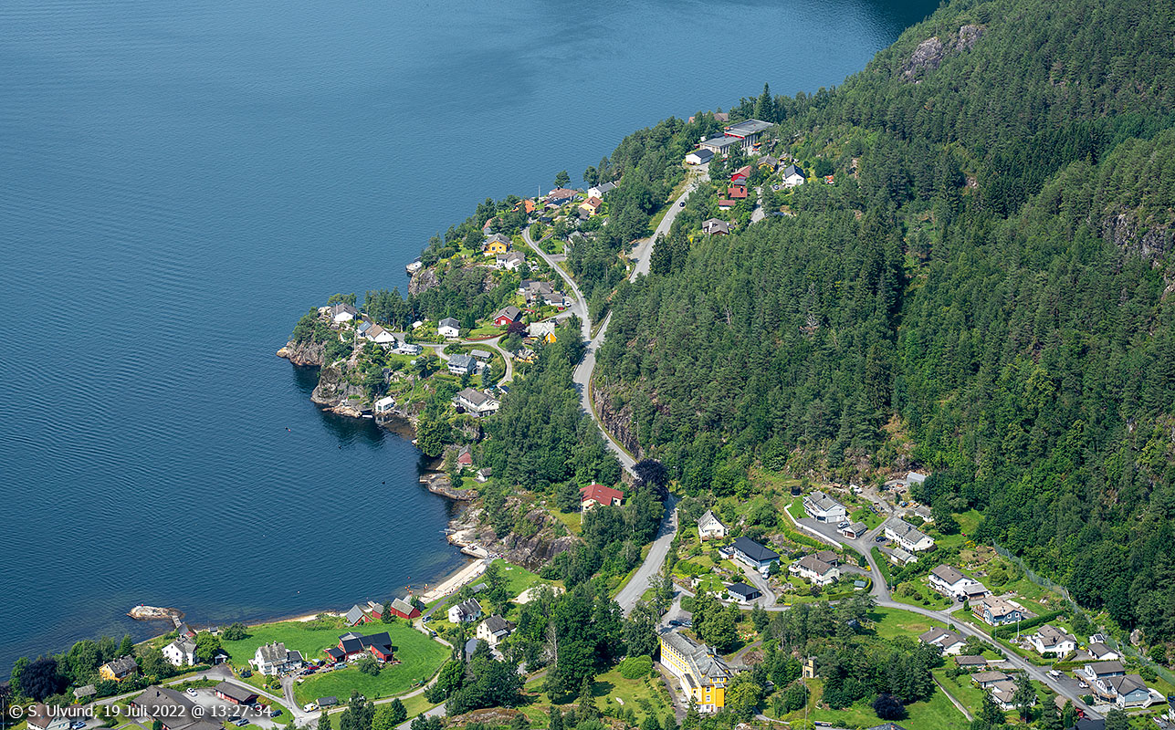 Jondal, Hardangerfjorden, Tørrvikbygd og Jetfly sett frå Vikanuten.