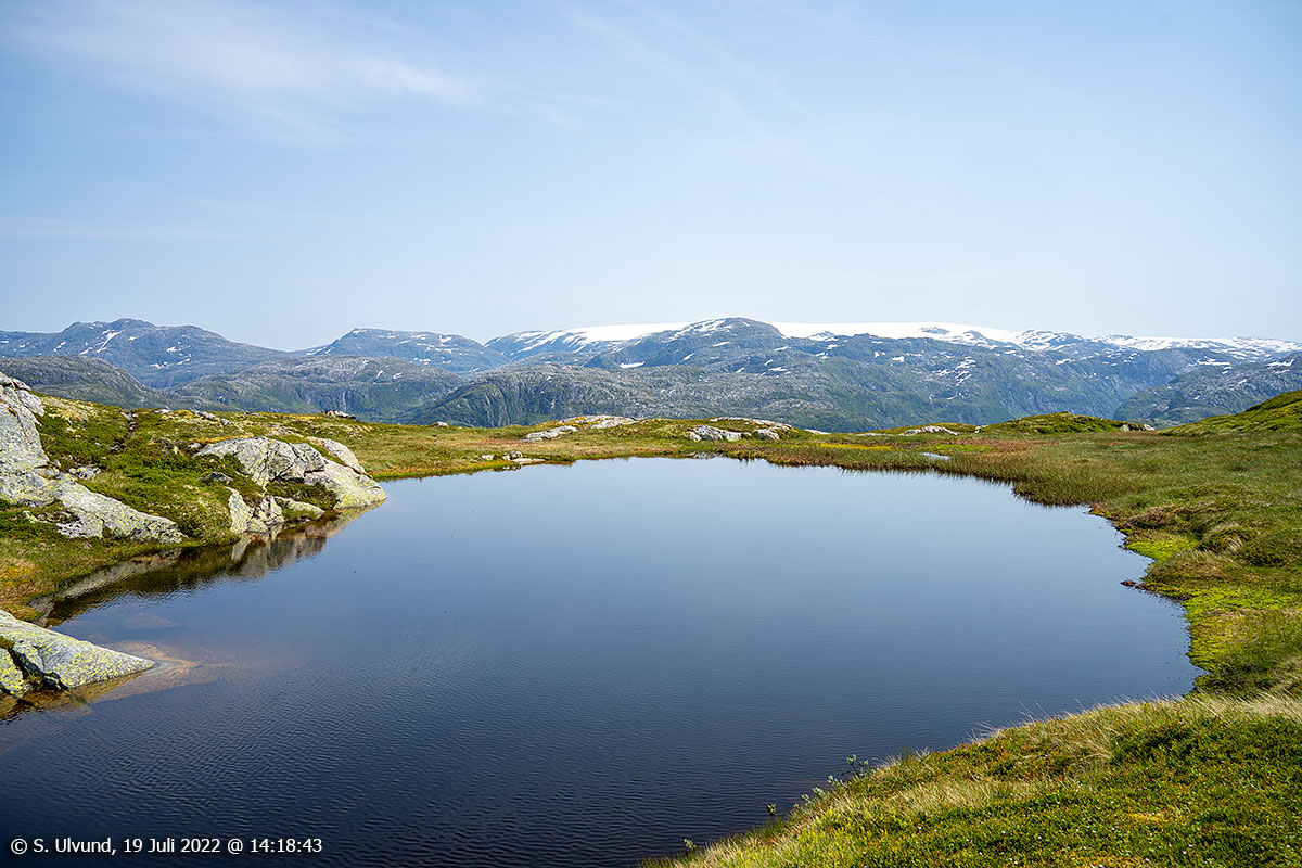 Jondal sett frå Fjellstøl, Fjellstøl og Iglatjørna mot Folgefonna.