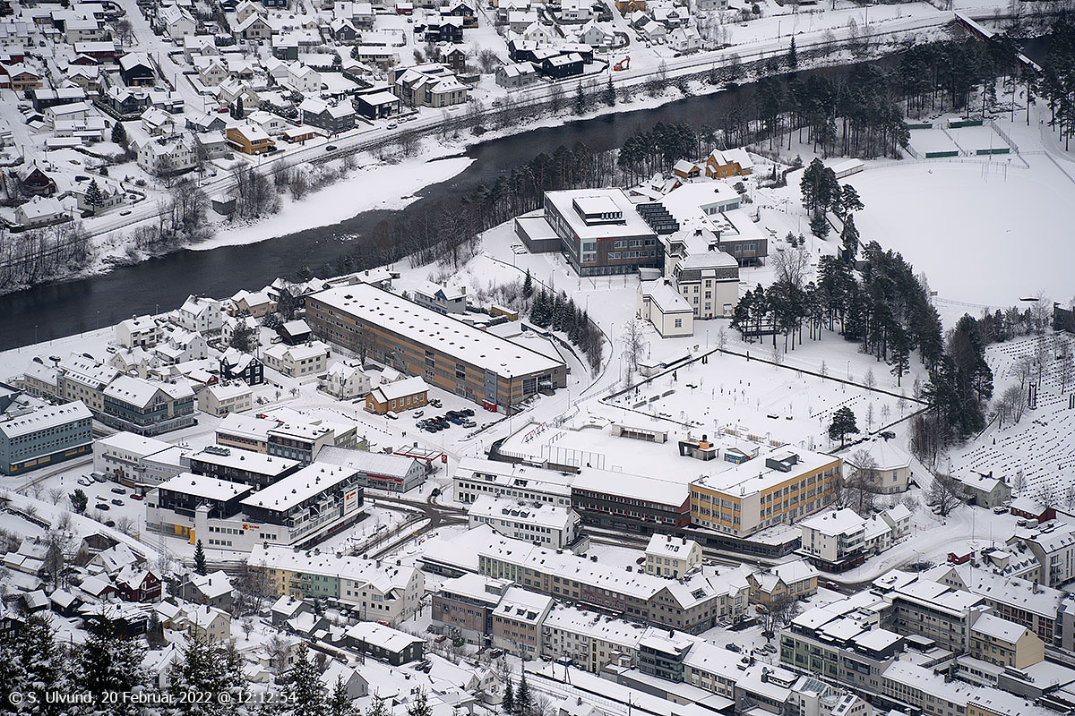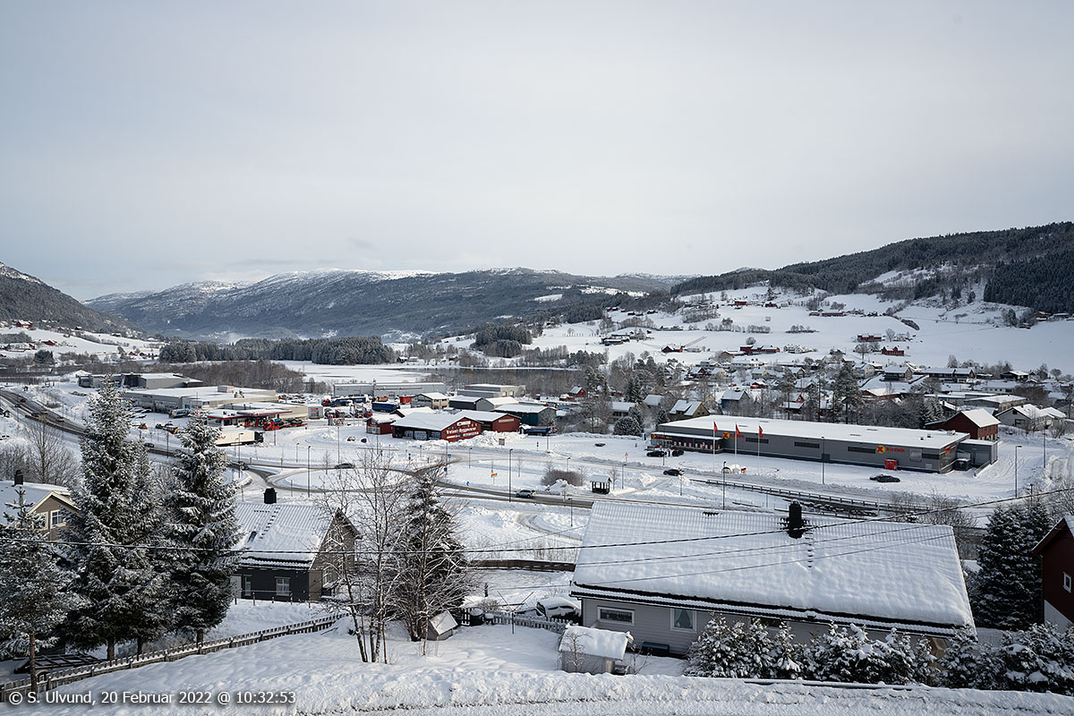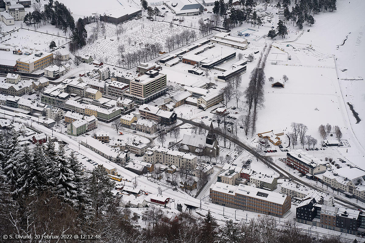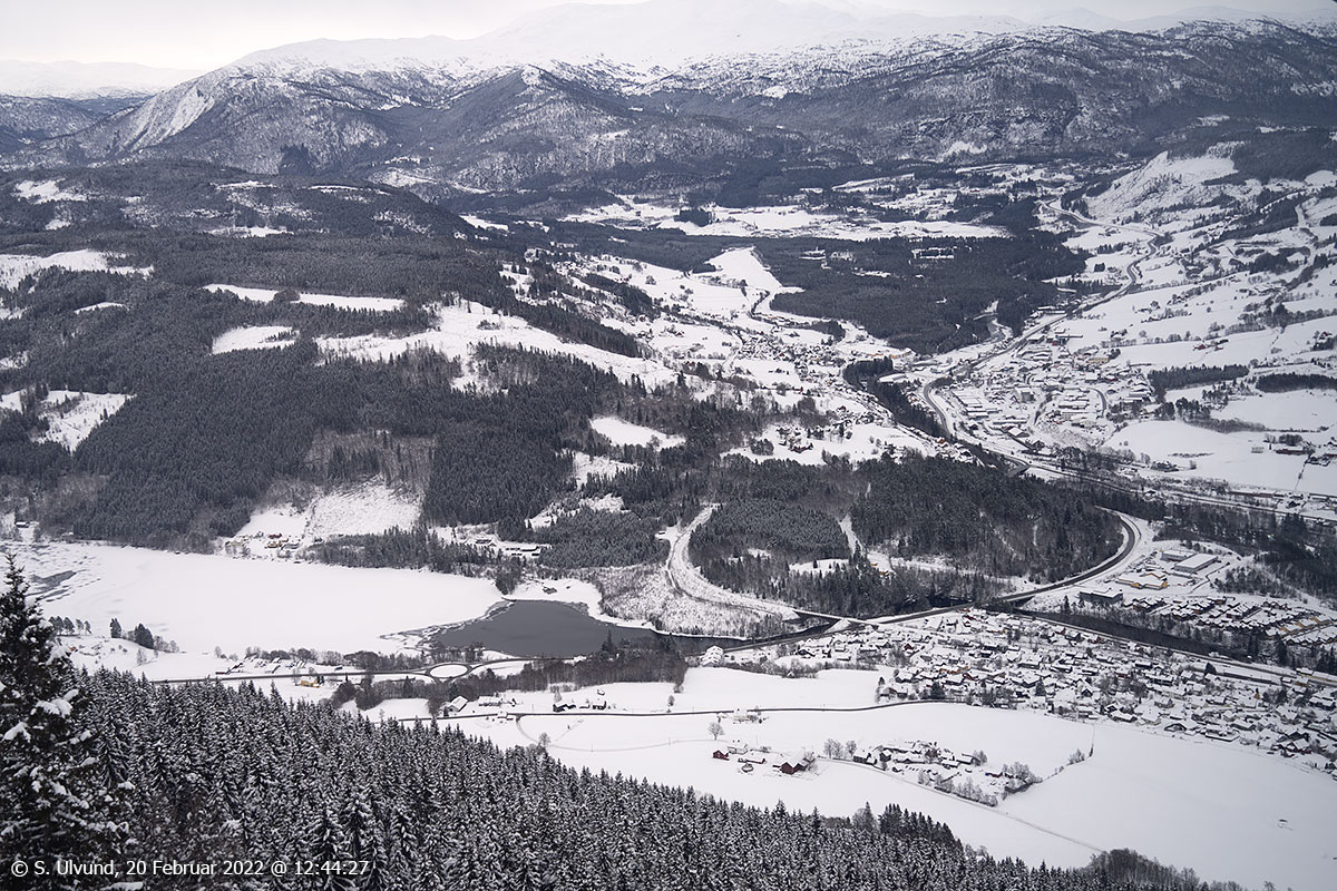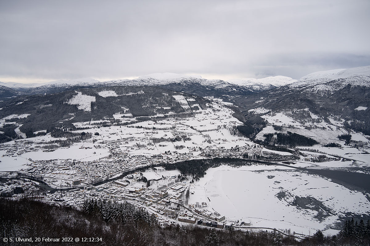 Voss sentrum frå gamle Hangursrestauranten, 20. februar 2022, 12:12 (Hanguren)
