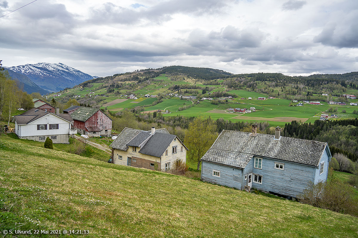 Roset stølar med Helland bak, 22. mai 2021, +15C (Bordalen Voss)
