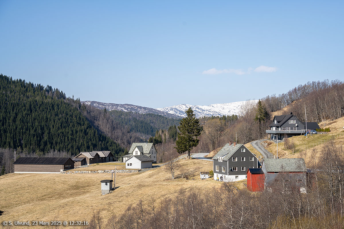 Brattabø sett frå Dalavegen, 23. mars 2025, 12:26