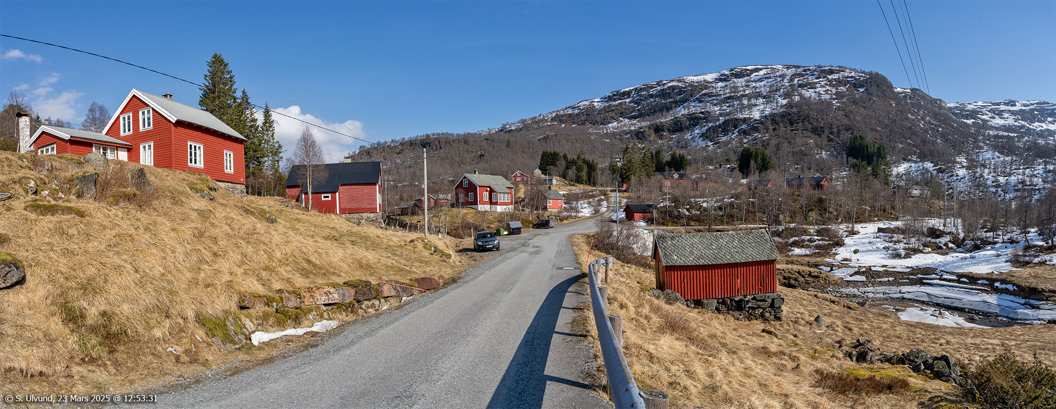 Nestsås med Styveshorgi bak sett frå Dalavegen, 23. mars 2025, 12:12