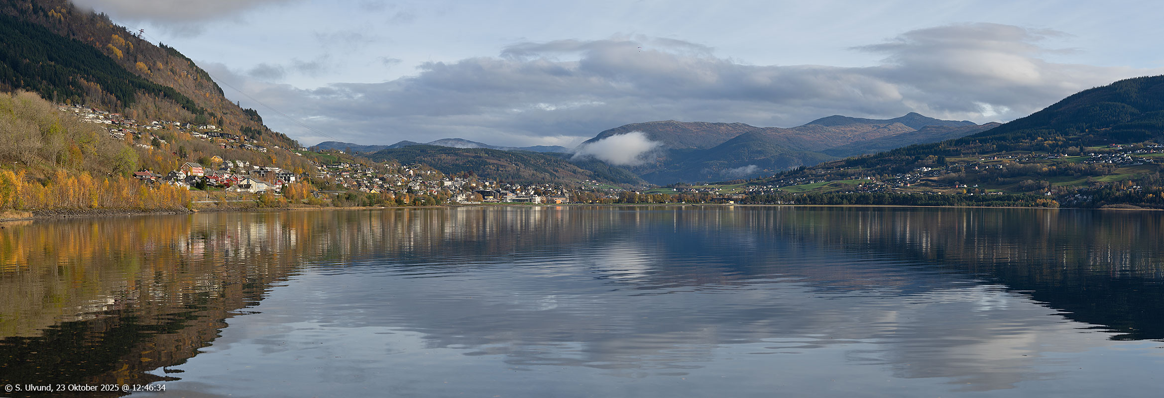 Voss sett frå Kvåle, 23. oktober 2025, 12:46, +9C (Panorama, Voss)