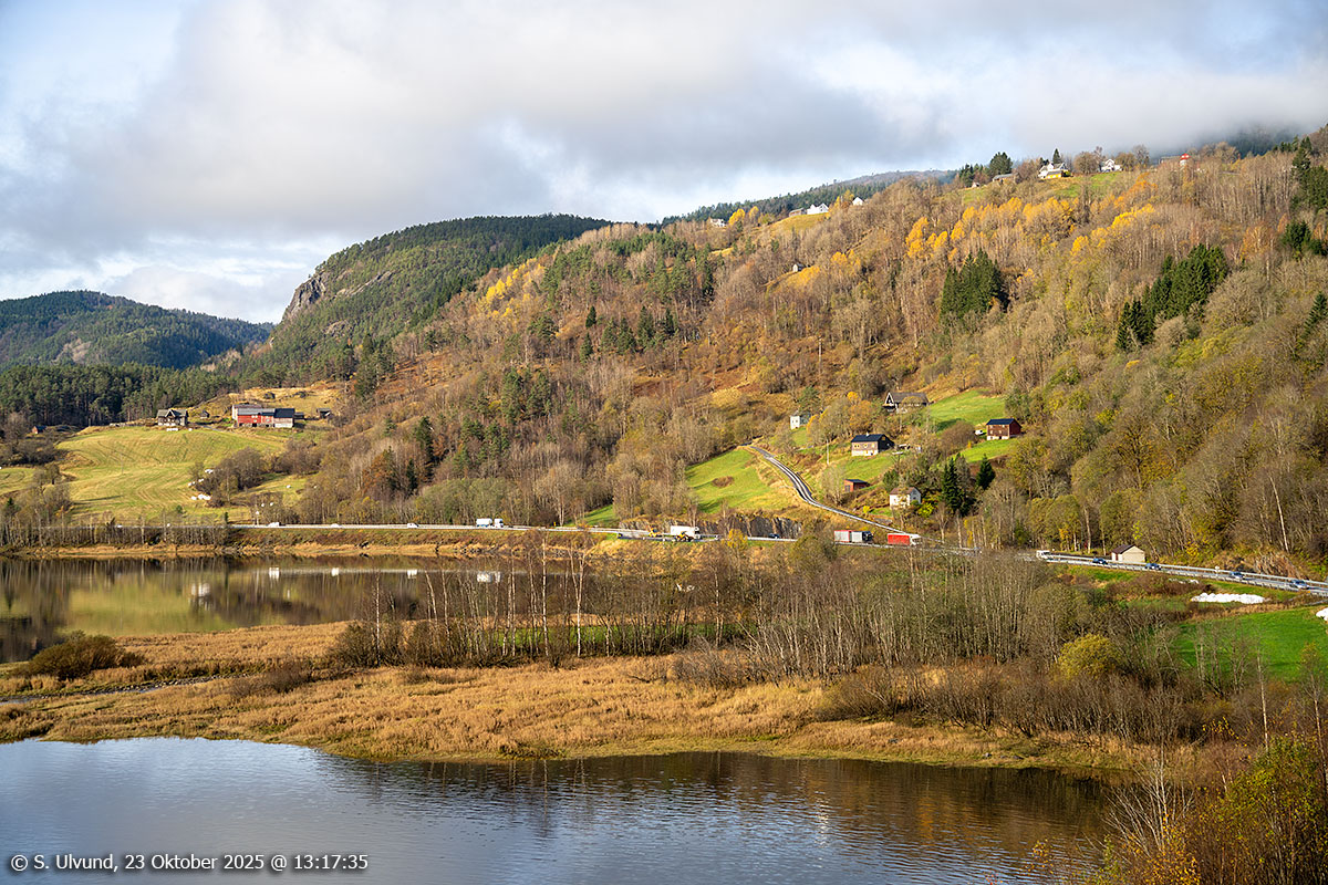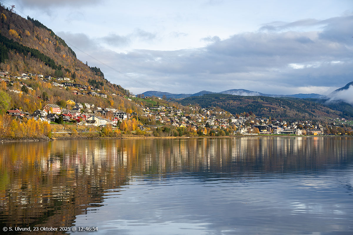 Utsyn frå Seimsbrua mot Voss, 23. oktober 2025, 12:40, +9C (Voss)