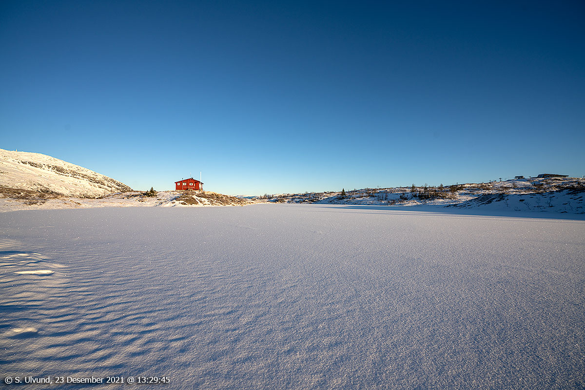 Raude Kross-hytta og Valbergtjørni, 23. desember 2021, 13:26, -3C (Hanguren Voss)