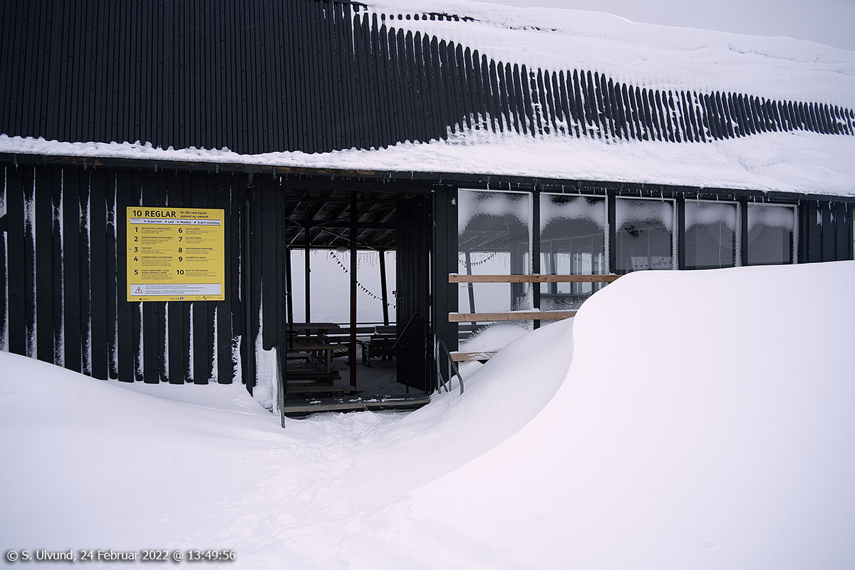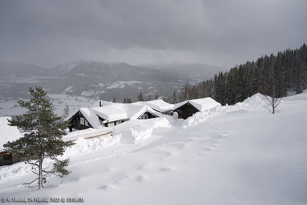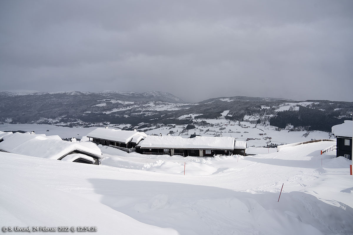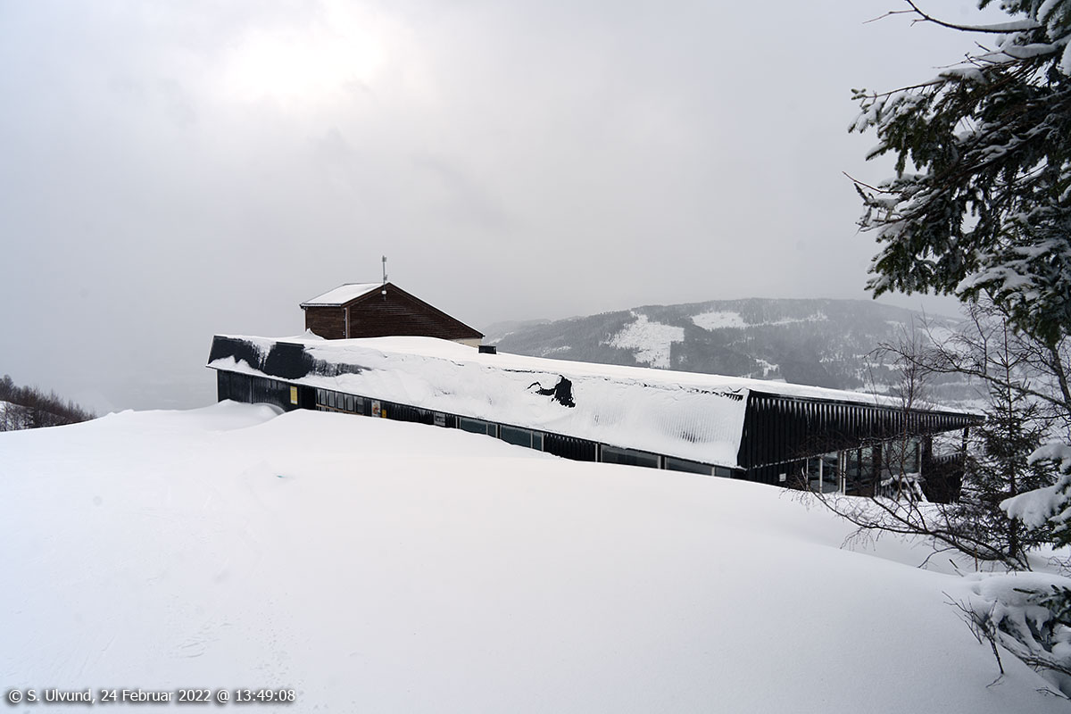 Mykje snø ved den gamle Hangursrestauranten og, 24. februar 2022, 13:49 (Hanguren, Voss)