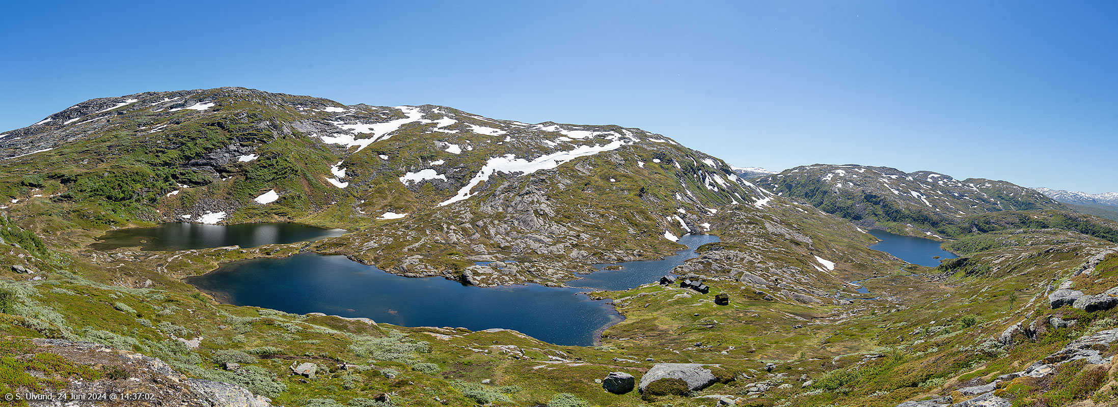 Skirstølstjørni sett på veg mot Hodnaberg, 24. juni 2024, 12:24Stølane Flatøyni sett på veg frå Hodnaberg mot Narheim, 24. juni 2024, 15:37