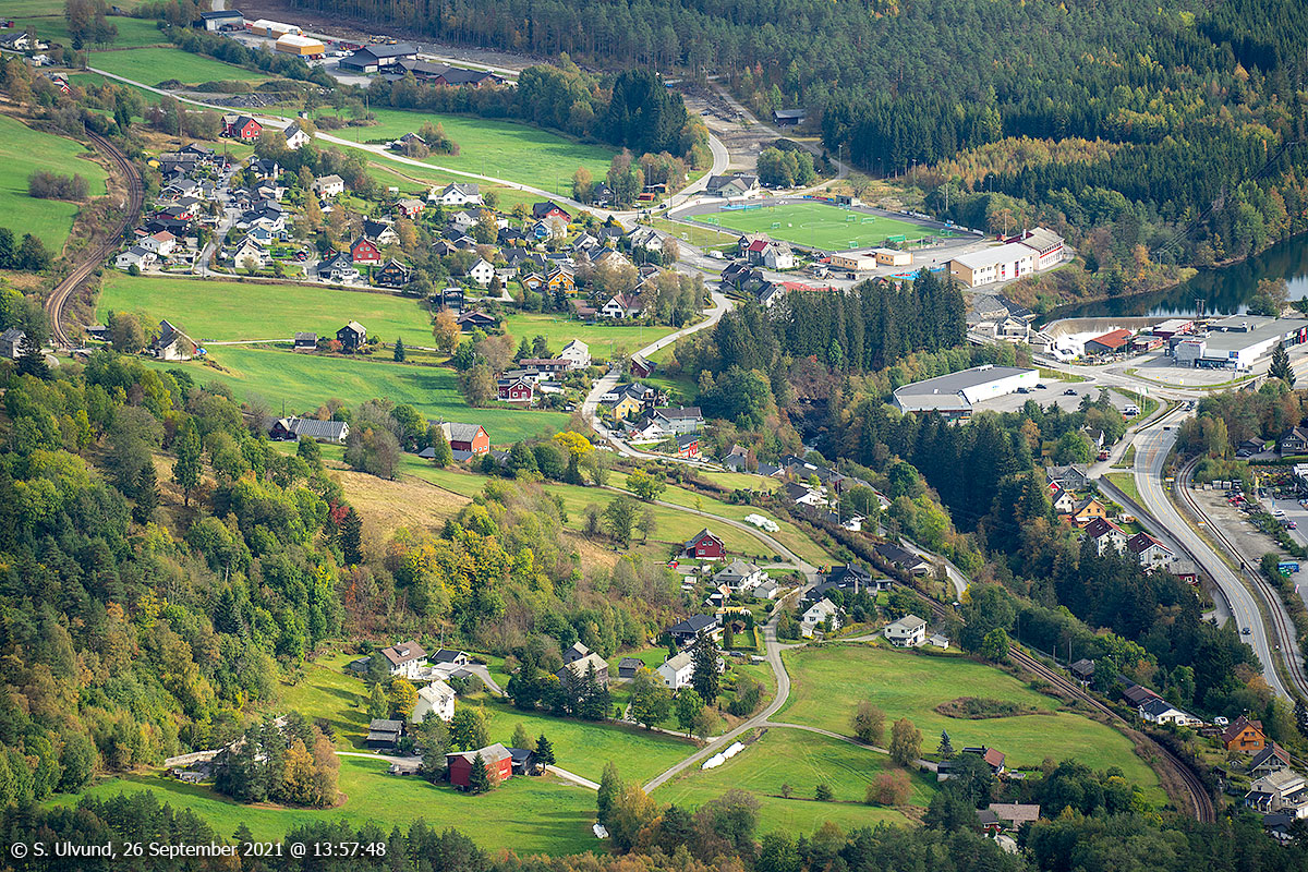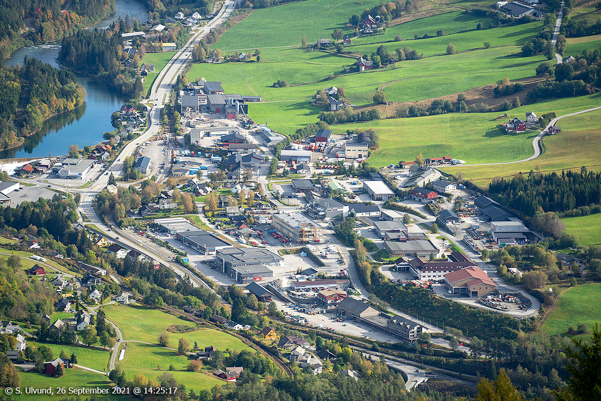 Skulestadmo og Palmafossen sett frå Hangurstoppen.