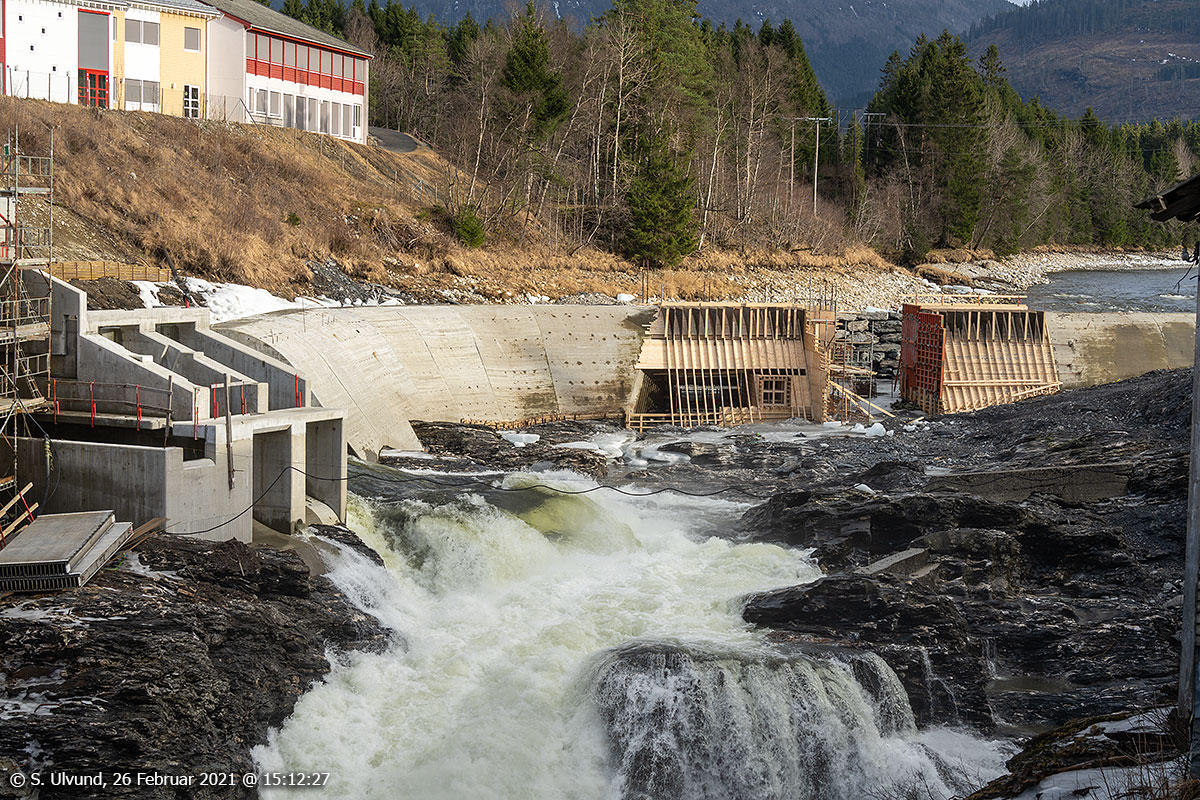 Nytt Kraftverk og laksetrapp under bygging i Palmafossen, 26. februar 2021, 15:12, +7C (Raundalselva Raundalselvi Kraftstasjon)Nytt Kraftverk under bygging i Palmafossen, 26. februar 2021, 15:12, +7C (Raundalselva Raundalselvi Kraftstasjon)Nytt Kraftverk med demning under bygging i Palmafossen, 26. februar 2021, 15:12, +7C (Raundalselva Raundalselvi Kraftstasjon)