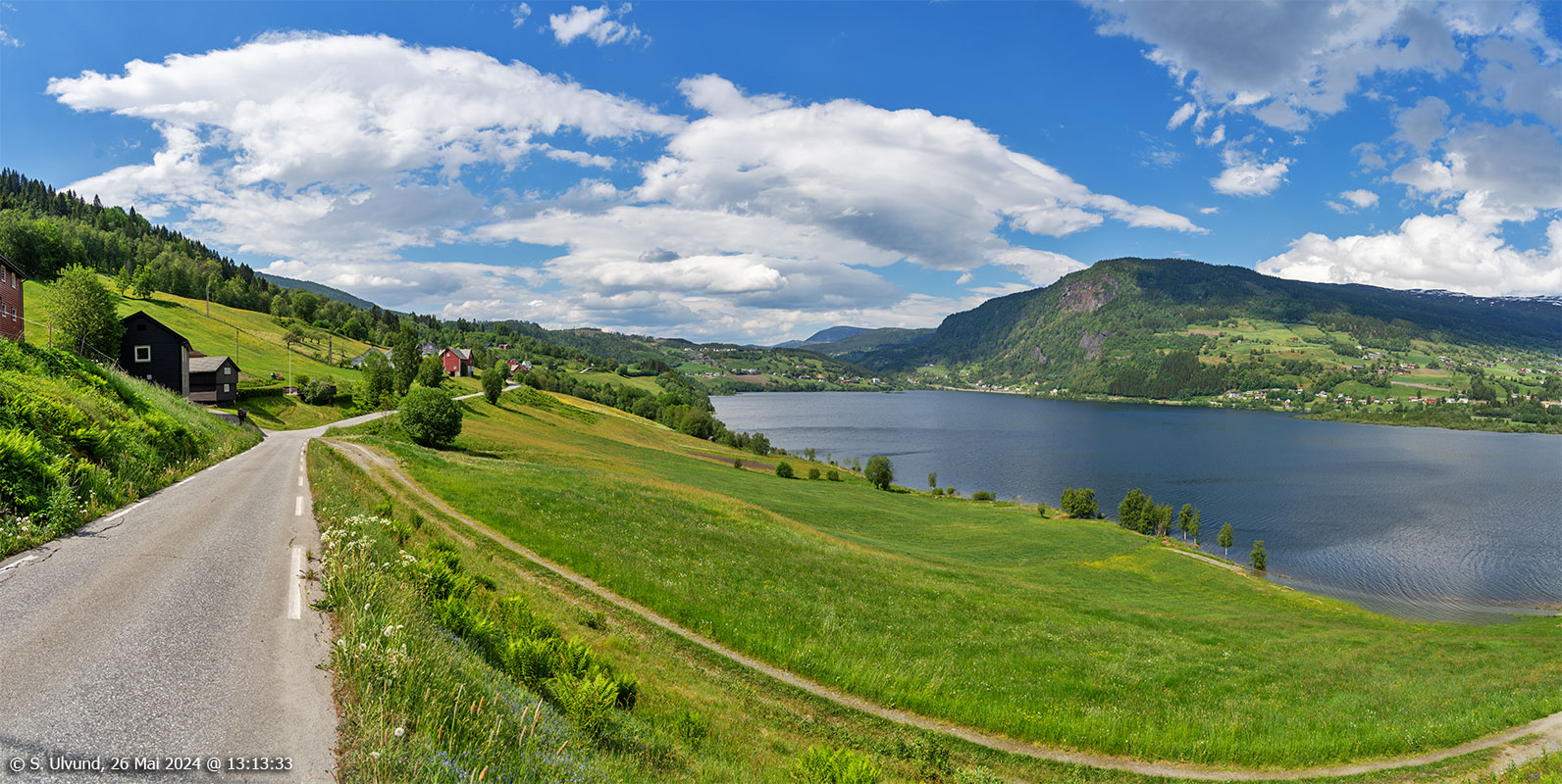 Utsyn mot Gjelle (Hjelle) sett frå Giljavegen, 26. mai 2024, 12:47, +23C (Voss)