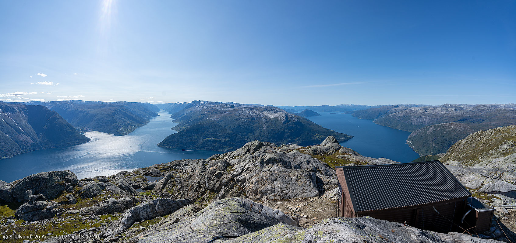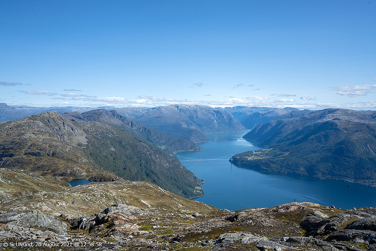 Oksen 1241 moh. med vidsynt oversyn mot Hardangerfjorden.