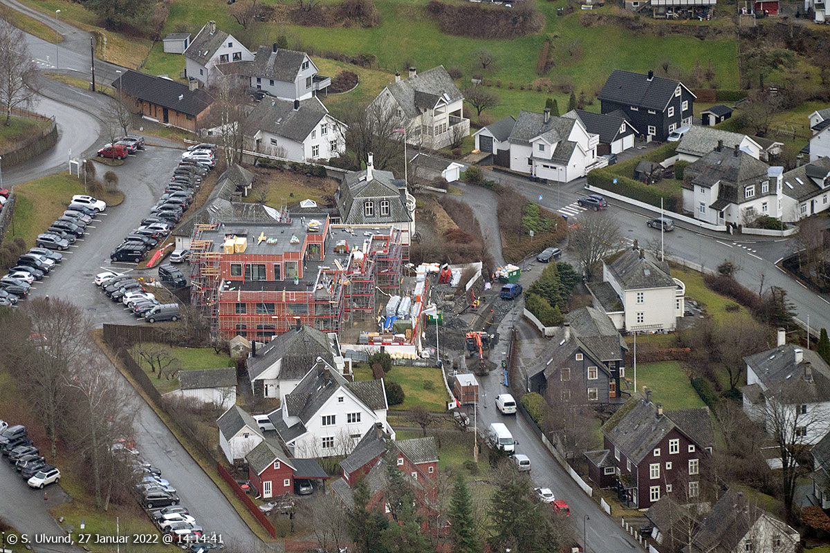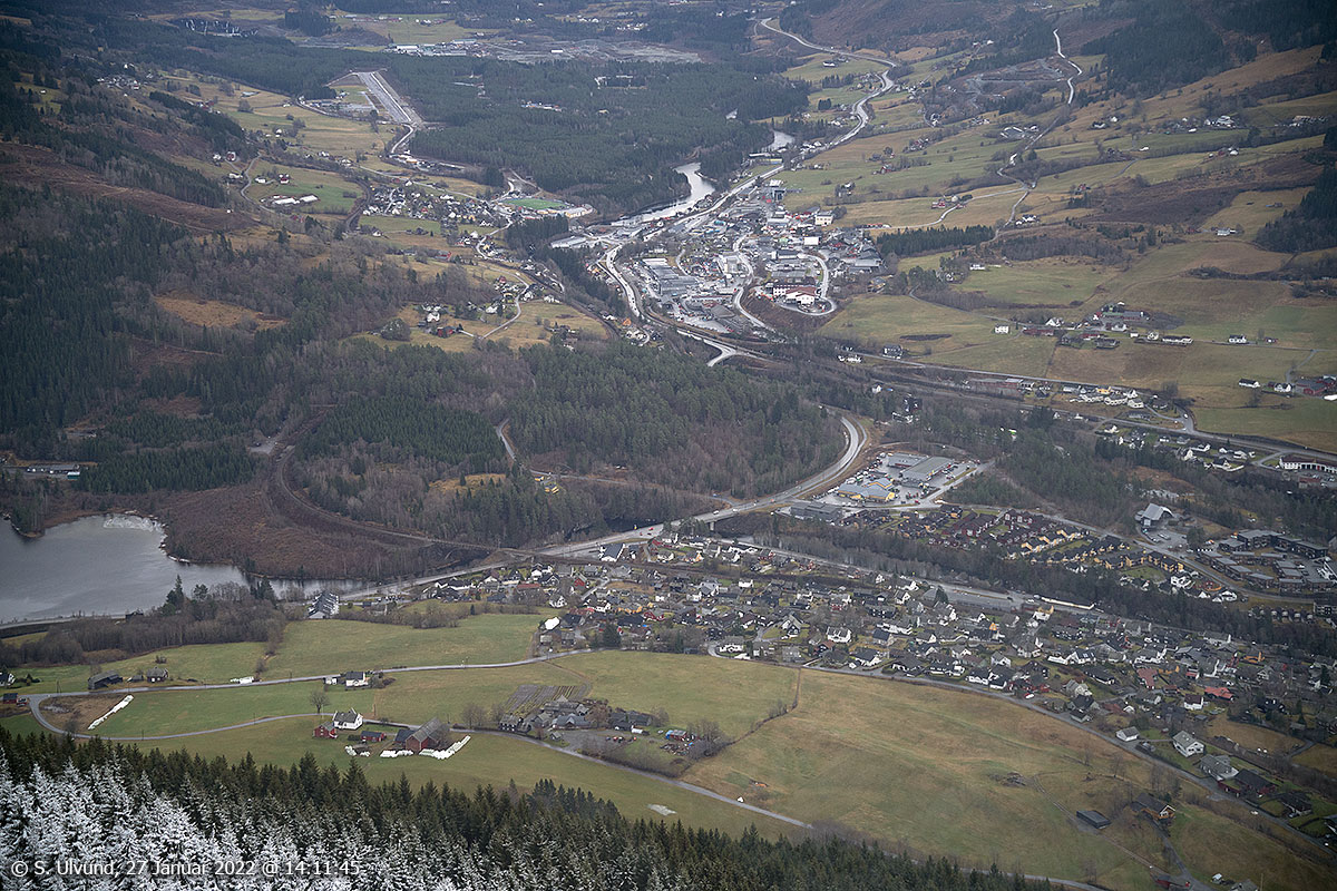 Sivlevegen og Ringheimsvegen sett frå Voss Gondol, 27. januar 2022, 14:14, +5C (Voss)