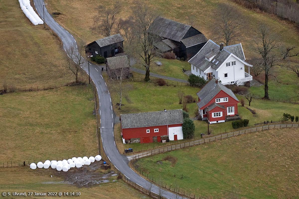 Utsyn mot Øvsthus (Kvitheim/Skulestadmo) sett frå Voss Gondol, 27. januar 2022, 14:11 (Voss)