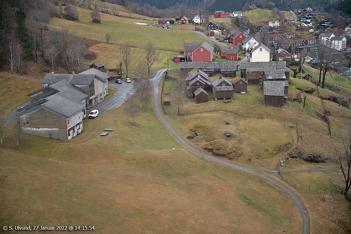 Mølstertunet (Voss Folkemuseum) se tt frå Voss Gondol, 27. januar 2022, 14:15, +5C (Voss)