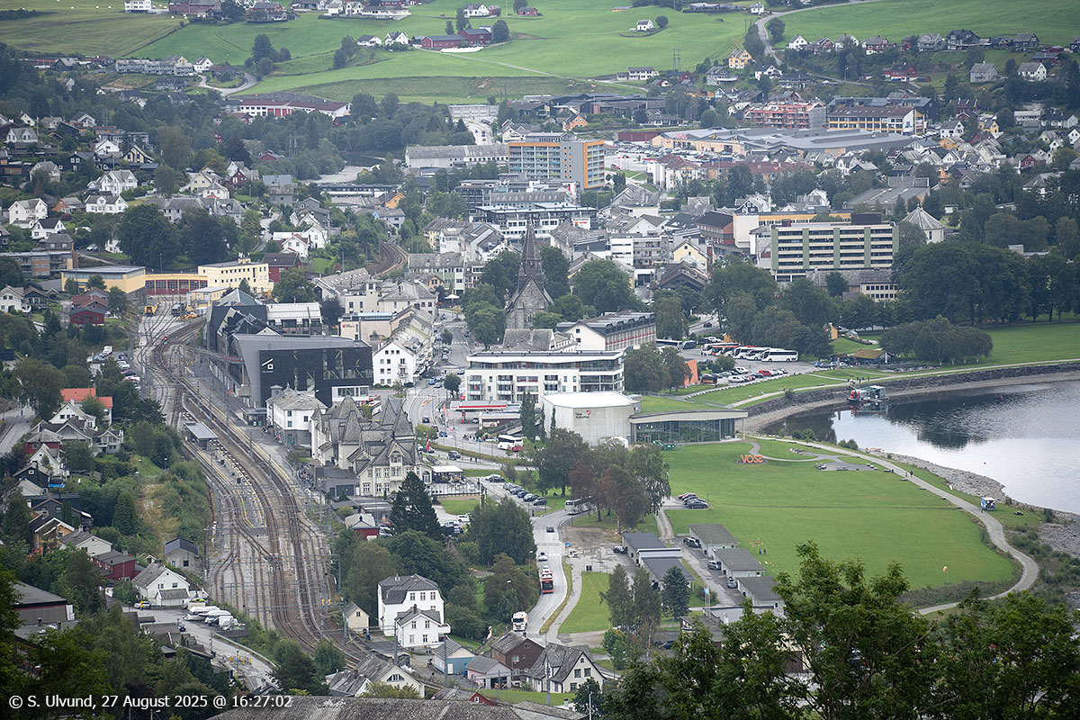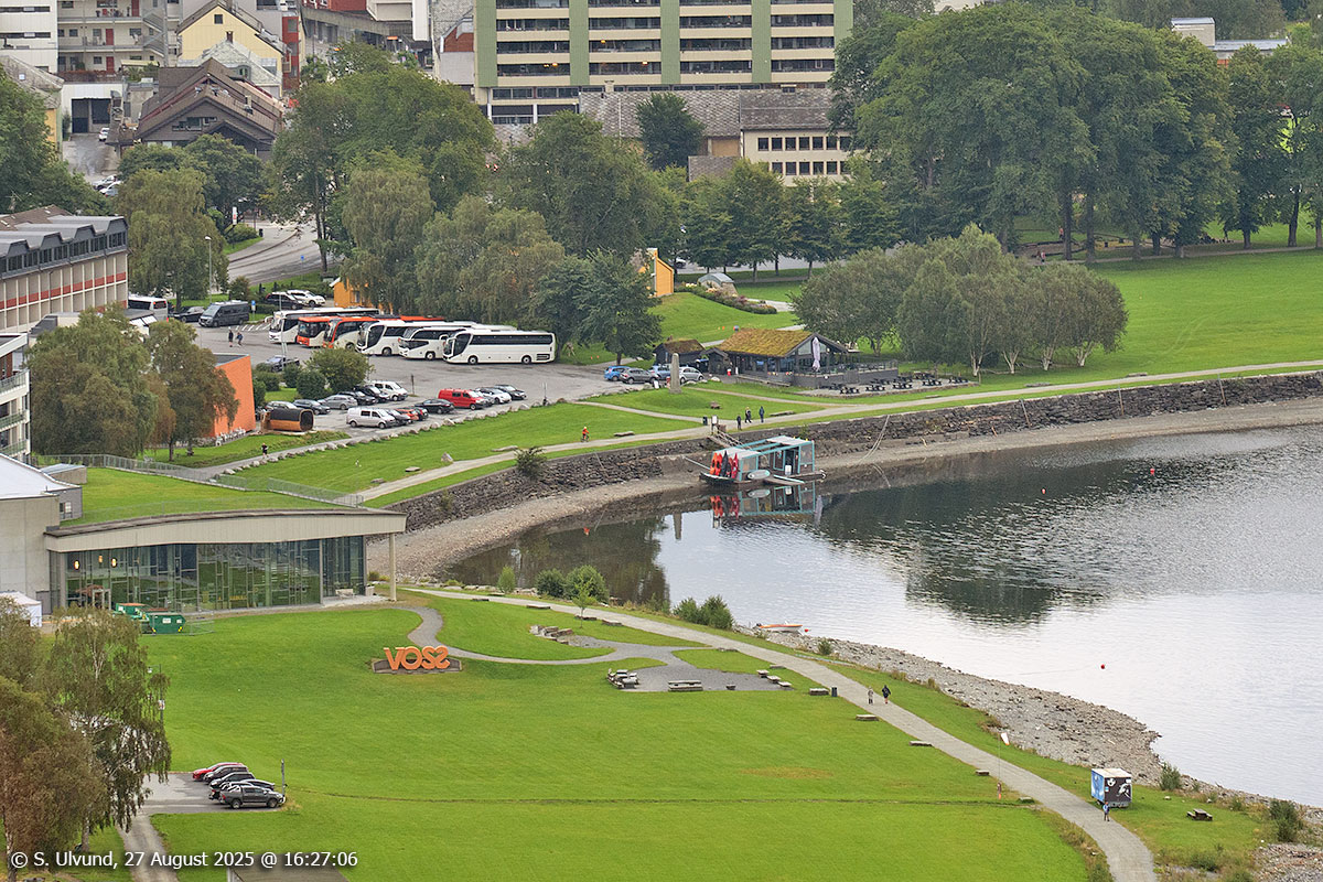 Flotte fargar på himmelen i mogontimane, 27. august 2025, 06:21, +11C (Skulestadmo)Voss sett frå Raugstadvegen, 27. august 2025, 16:27, +16CVoss sentrum sett frå Raugstadvegen, 27. august 2025, 16:27, +16CHolbergsplassen og Minigolfen sett frå Raugstadvegen, 27. august 2025, 16:27, +16C
