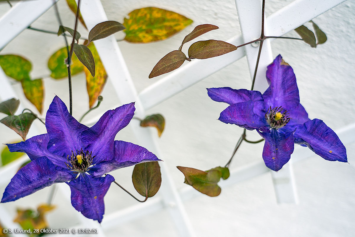 Det minkar på hageblomane, men her er to som held ut, 28. oktober 2021, 13:02, +10C (Voss Flora Hageblomar)