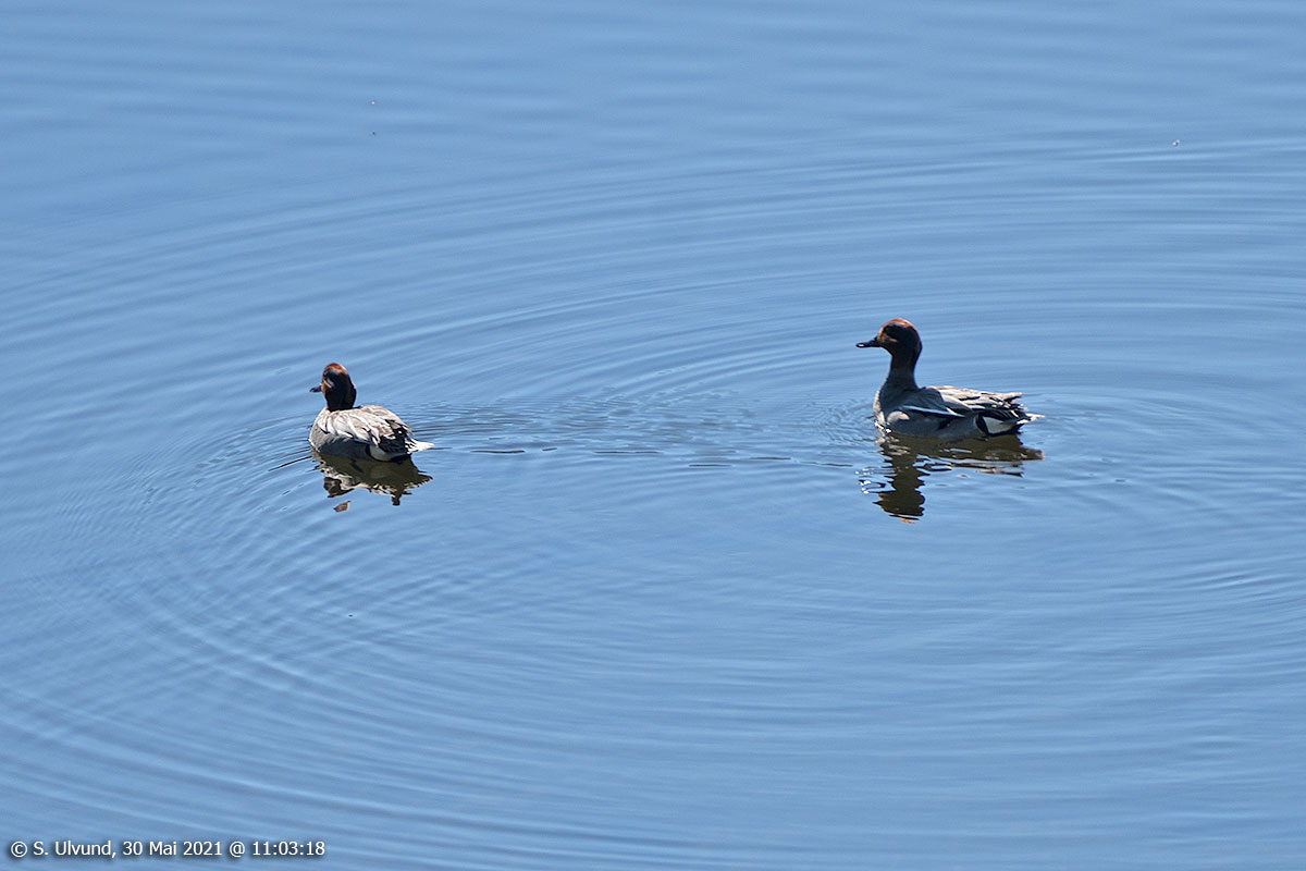 Krikkand (Anas crecca) på Lønavatet, 30. mai 2021, 11:03, +17C (Reppen Fuglar Fauna)