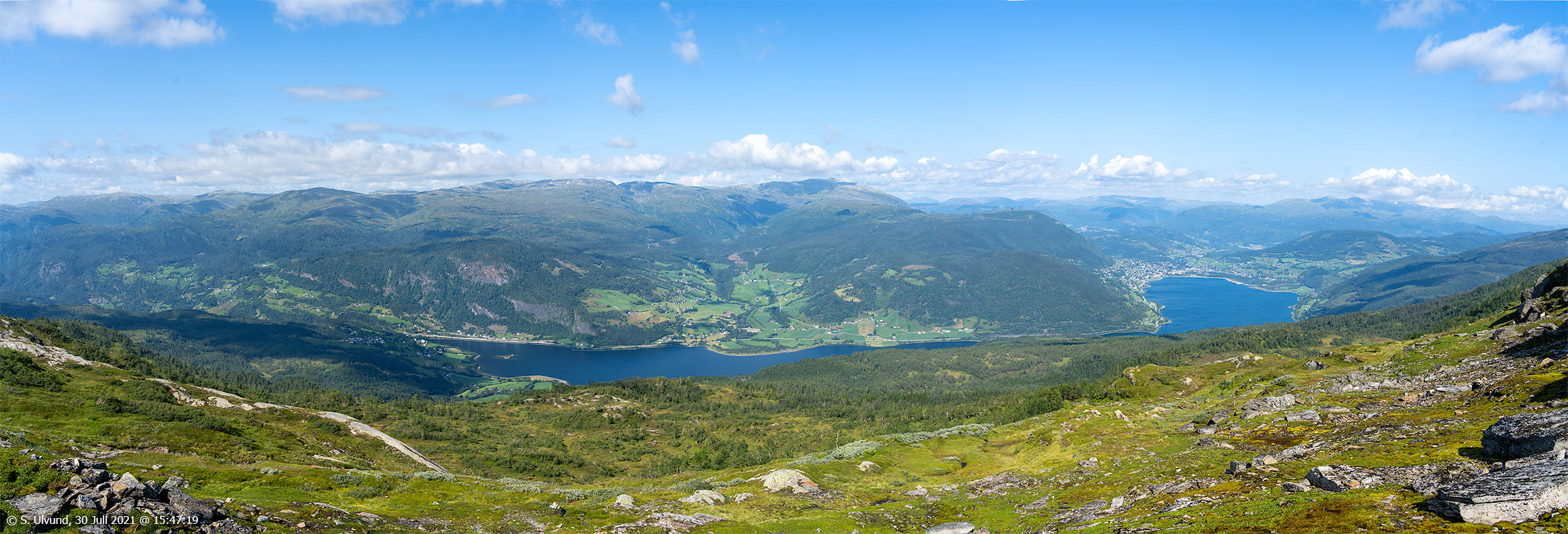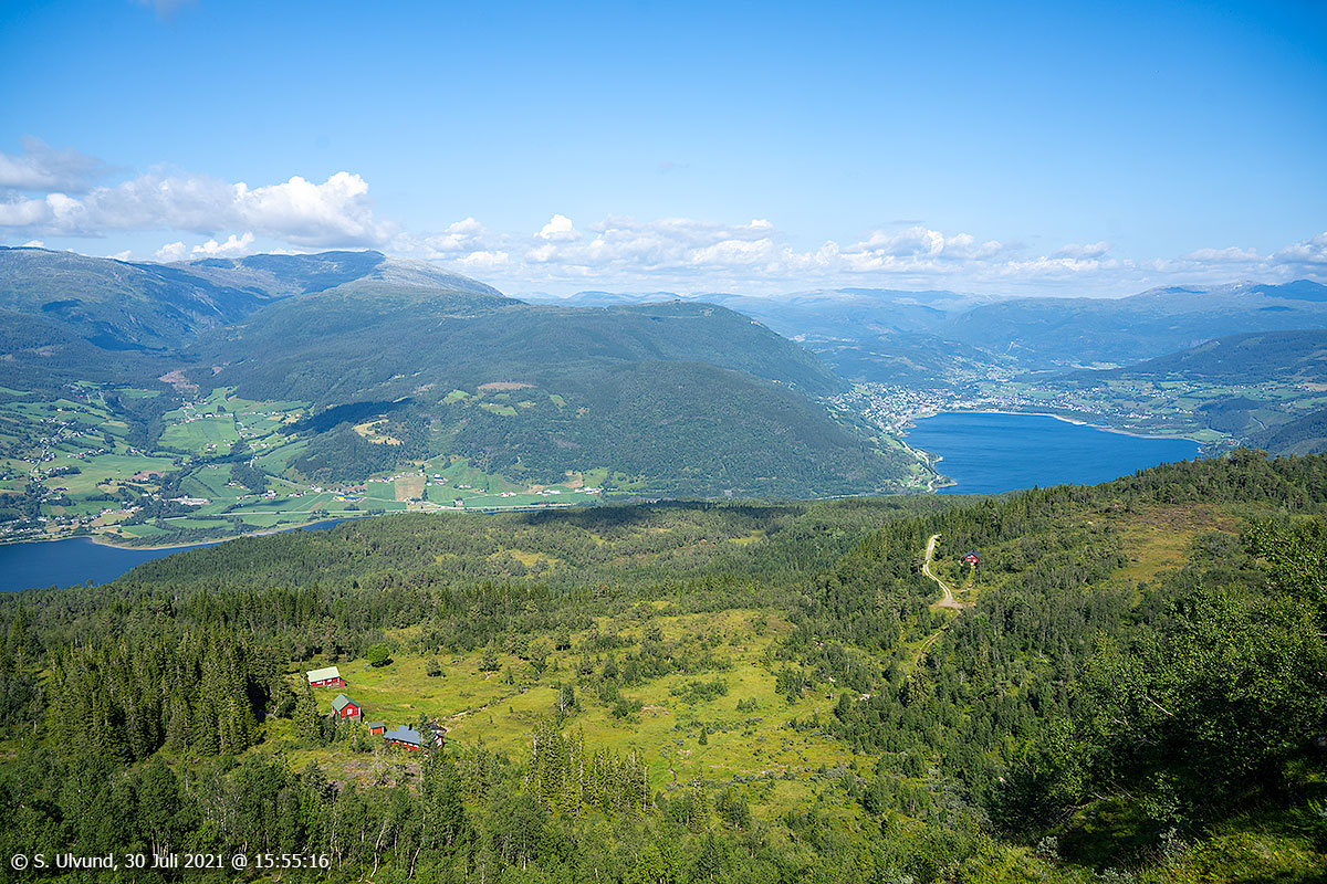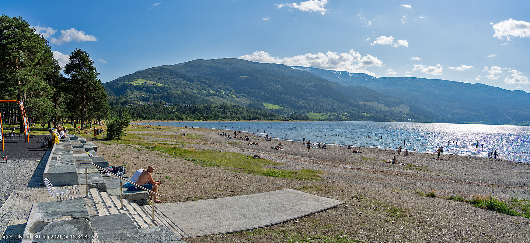 Vestbygdi, Bulken, Dyrvedalen og Voss sett på veg ned mot Øyane, 30. juli 2021, 15:47 (Gråsida Voss)Øyane, Dyrvedalen og Voss sett på veg ned mot Øyane, 30. juli 2021, 15:47 (Gråsida Voss)Mot Voss frå Tyrlingen, 30. juli 2021, 16:24, +25CVarmt og fint sommarvær og mange badegjester langs Grandane, 30. juli 2021, 16:34, +25C (Prestegardsmoen Voss)