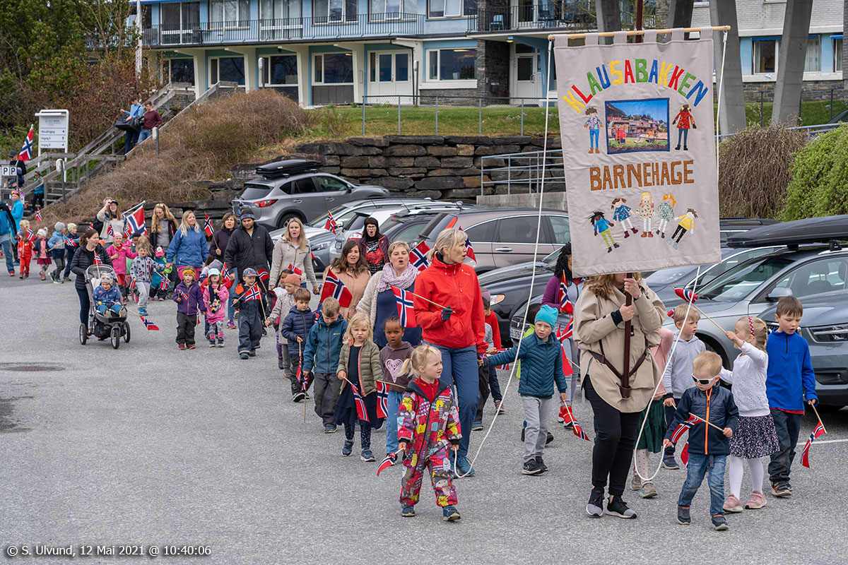 Klausabakken Barnehage med syttande mai tog framføre Voss Sjukehus til glede for pasientar og tilsette.