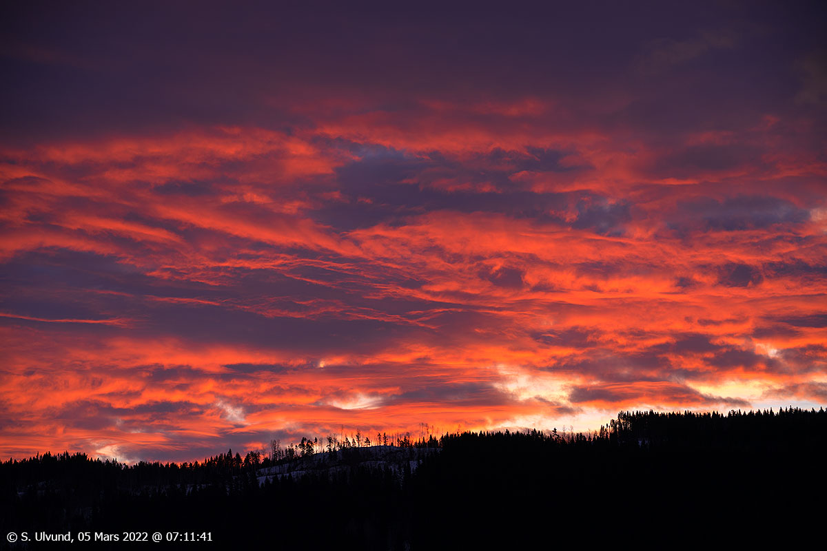 Så var me i gang med ein ny dag, den byrja med ein fargerik og fin himmel over bygda.