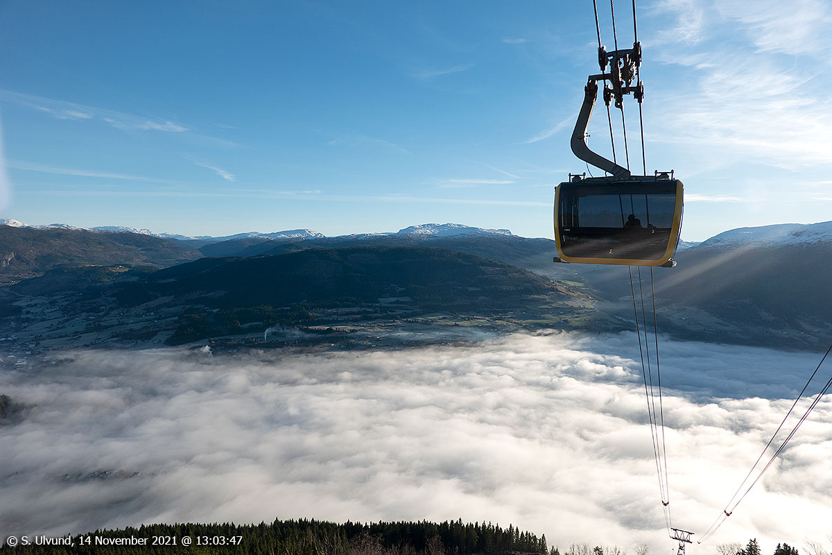 På tur til Hanguren retur med Voss Gondol. På tur opp til Hangurstoppen.