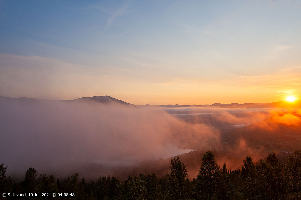 Tidleg morgon med soloppgang sett frå frå Roset, det teiknar til å verta ein varm og fin sommardag.
