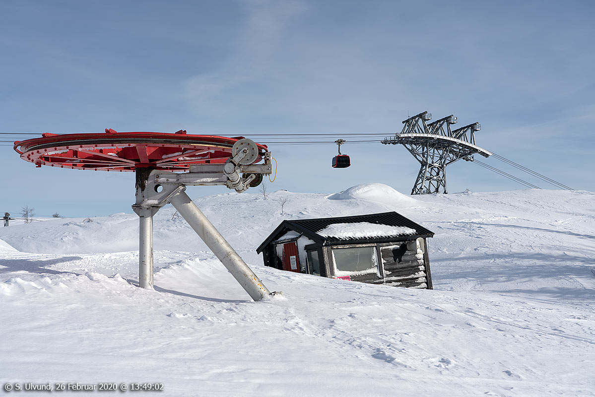 Gamalt og Nytt, gamle HMV Stolheisen (Hangursheisen) og Voss Gondol på Hangurstoppen (Hanguren Voss) (Februar 2020)