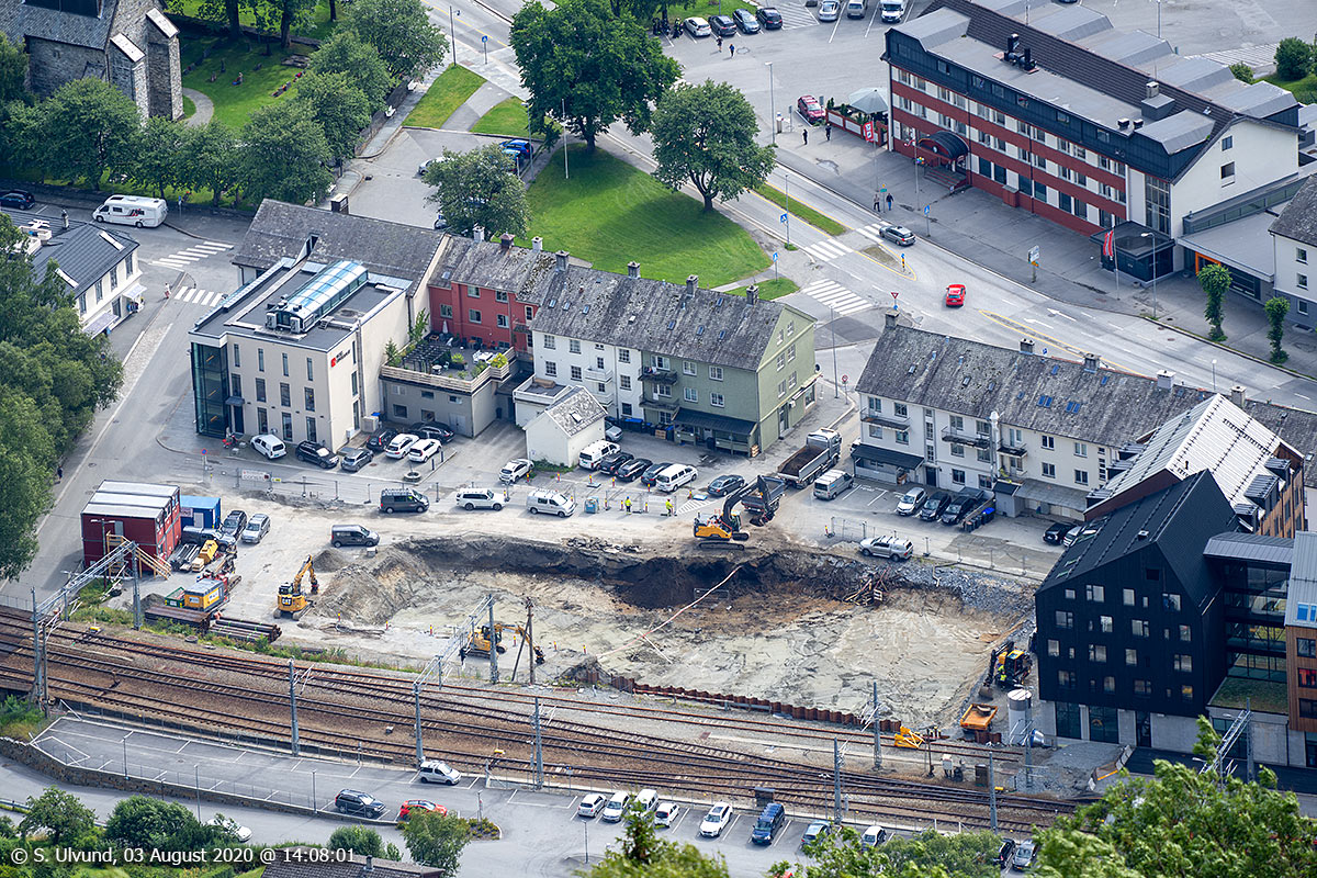Gravinga er i gang igjen etter ferien – her skal det koma nytt kontorbygg (Fengselstomta) (Voss) (August 2020)